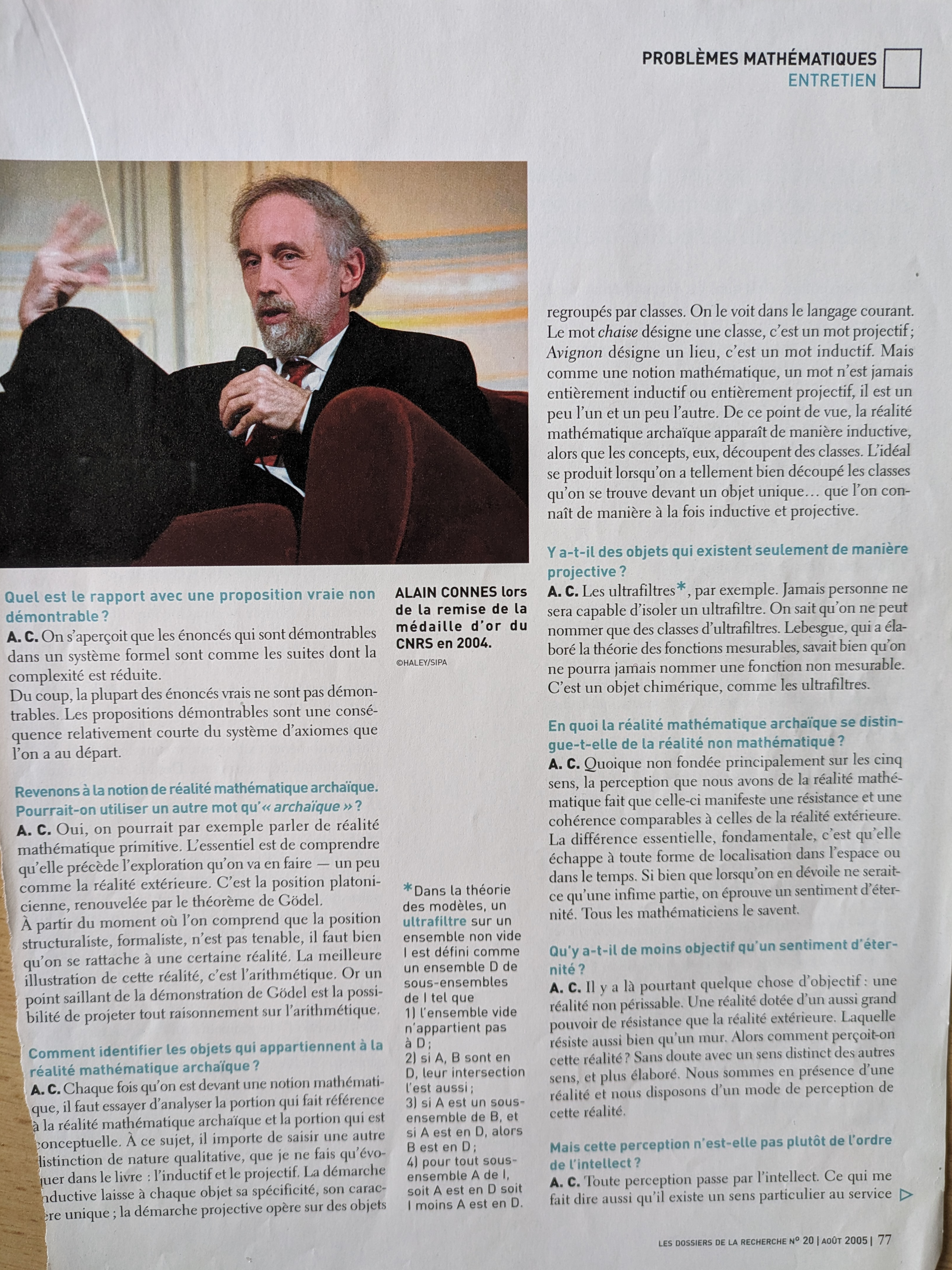 121) mars 2025 : transcription de petits extraits de la leçon inaugurale d’Alain Connes trouvés sur un réseau social à large audience