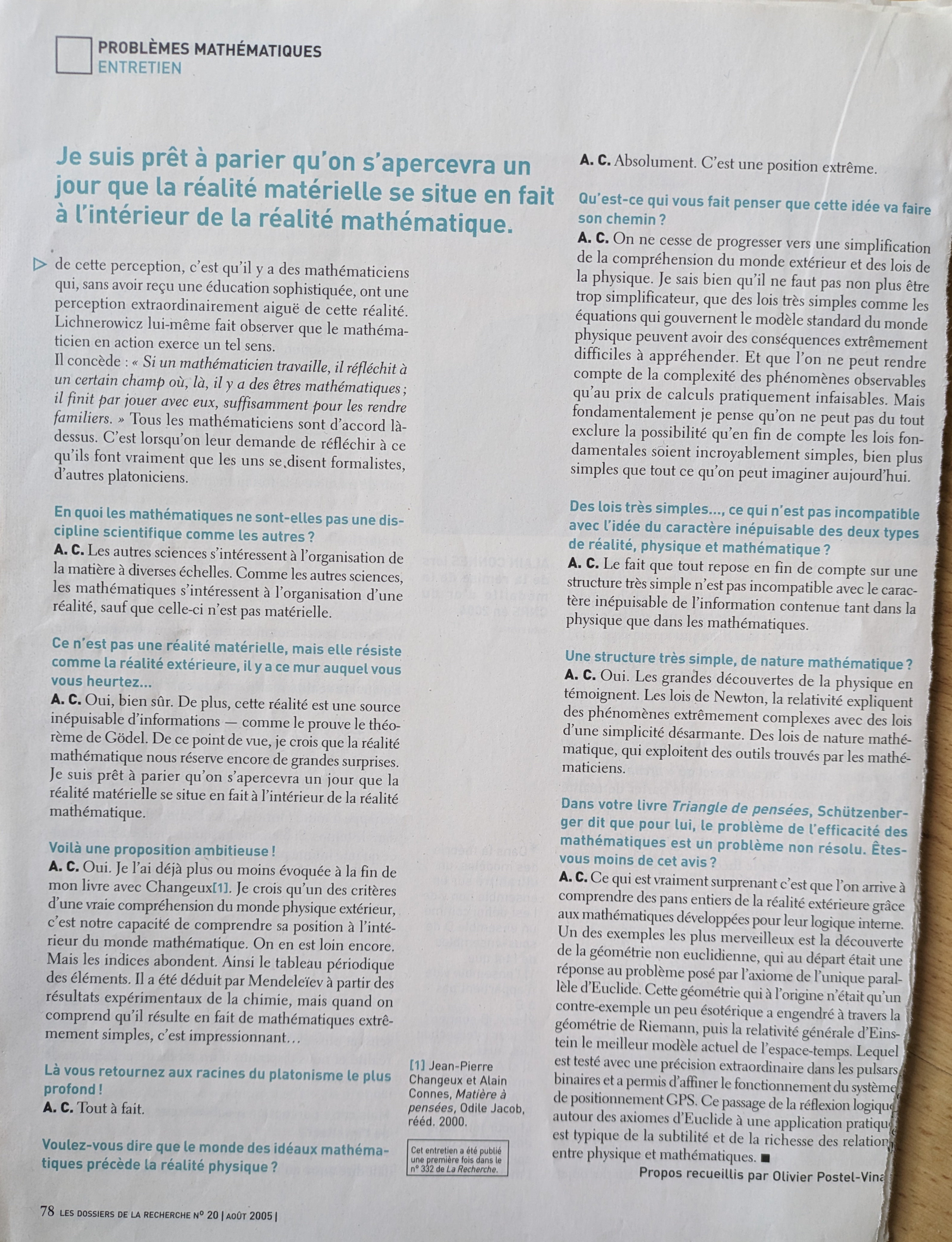 21) Transcription de l’intervention d’Alain Connes lors d’une table ronde