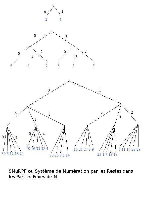 Par programme, on peut tester les faits suivants (vérifié jusqu'à 2.10^7) : Tout nombre pair 2x compris entre 30 et 210 partage l'un de ses décomposants Goldbach avec 2x-6 ; Tout nombre pair 2x compris entre 210 et 2310 partage l'un de ses décomposants Goldbach avec 2x-30 ; Tout nombre pair 2x compris entre 2310 et 30030 partage l'un de ses décomposants Goldbach avec 2x-210 ; Tout nombre pair 2x compris entre 30030 et 510510 partage l'un de ses décomposants Goldbach avec 2x-2310 ; Tout nombre pair 2x compris entre 510510 et 9699690 partage l'un de ses décomposants Goldbach avec 2x-30030 ; Les nombres successifs (30, 210, 2310, 30030, etc...) sont les produits des nombres premiers successifs : 2*3*5, 2*3*5*7, 2*3*5*7*11, etc... (je les ai appelés "primorielles" à cause de la ressemblance avec la notion de factorielle). En fait, on réalise par programme qu'il semblerait (voici donc ma conjecture personnelle !) que tout nombre pair supérieur à 14 partage au moins l'un de ses décomposants de Goldbach avec 2x-6. Une telle propriété découle du fait qu'un nombre pair a PLUSIEURS décompositions qui entretiennent entre elles certaines relations (au niveau de leurs coordonnées dans un système d'écriture RNS). Un grand merci à Dominique Ceugniet, qui a éliminé ce que je croyais être deux exceptions à cette nouvelle conjecture. Dans tous les autres cas (pour l'instant, j'ai testé par programme jusqu'à 3.10^6), les décomposants de Goldbach sont suffisamment nombreux et équitablement distribués au niveau de leurs coordonnées pour qu'il y ait partage. Dominique Ceugniet confirme cette nouvelle conjecture jusqu'à 16.10^8. Il a également fait quelques statistiques : pour les nombres pairs compris entre 15.10^8 (inclus) et 16.10^8 (exclu), le nombre maximum d'essais à effectuer avant de trouver une décomposition qui partage un nombre premier est 8979, tandis que la moyenne du nombre d'essais à effectuer dans cette zone de nombres est 290. L'exemple d'un décomposant partagé trouvé après 8979 essais est : 1 508 792 552 = 17 959 + 1 508 774 593 1 508 792 546 = 17 959 + 1 508 774 587 Si tout nombre partage l'un de ses décomposants de Goldbach avec un nombre plus petit que lui (hérite d'un décomposant en quelque sorte), alors la conjecture doit être vraie pour tout nombre. Reste à prouver d'où découle cet héritage... En fait, la seule approche par laquelle il me semblerait possible de trouver quelque chose est une approche combinatoire ou probabiliste Erdös aurait résolu ça très vite. Les deux premières coordonnées (mod 2 et mod 3) ne présentent pas assez de valeurs. A partir de mod 5, ça se met à "éclater", ou dit autrement à se "répartir équitablement selon les différentes valeurs possibles". Il faut réfléchir à la probabilité qu'ont deux nombres tirés au hasard de 0 à p d'être différents d'un même troisième tiré lui-aussi au hasard parmi les mêmes valeurs, car les chances d'obtenir les différentes valeurs selon chaque coordonnée sont équiprobables, je crois. C'est un peu comme si les nombres obtenaient leurs restes selon les différents modules premiers "au hasard". Je trouve cela un peu illogique comme approche car, comme on le sait par la théorie des congruences de Gauss, il n'y a pas plus déterministe que les restes modulaires, qui suivent des périodicités totalement rigoureuses. Tout ceci peut être représenté par des arbres de nombres, une représentation très "naturelle" pour les informaticiens. On peut associer les nombres aux feuilles d'arbres de différentes profondeurs : les branches des arbres à suivre pour aboutir à un nombre correspondent aux classes d'équivalence auxquelles appartient ce nombre modulo les nombres premiers successifs. Pour passer d'un arbre à l'arbre de niveau suivant, chaque feuille a pour descendants les nombres d'une mini-suite arithmétique. Voici les arbres des 3 premiers niveaux : les trois premiers arbres A partir du niveau 4, ça devient illisible de représenter cela par un arbre : du coup, on représente les ensembles de feuilles par paquets (de 7 par exemple), dans l'ordre des restes modulaires (de 0 à 6 par exemple). Voici les feuilles de niveau 4. feuilles du niveau 4 |