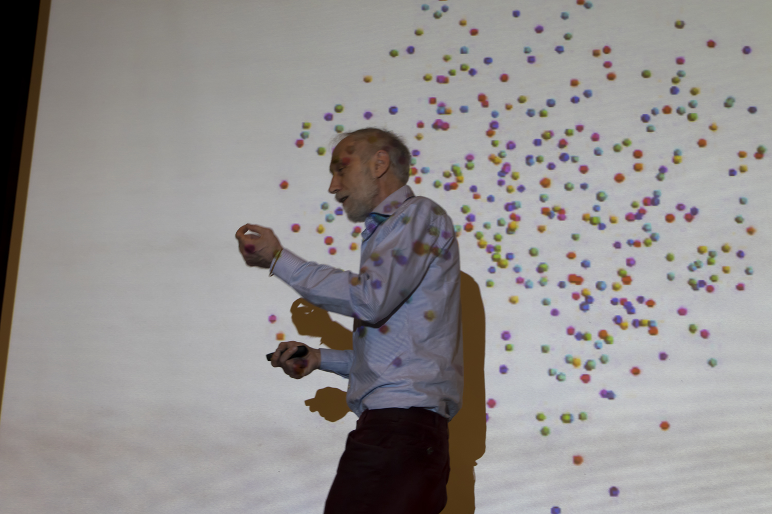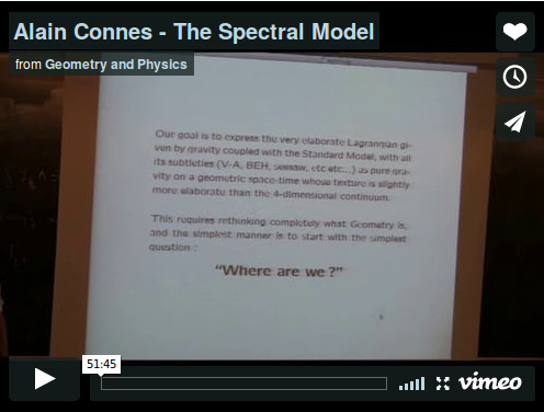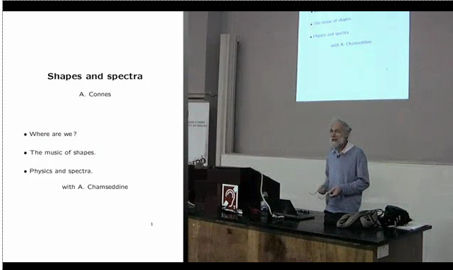 Alain Connes devant un espace de Stone (espace complètement séparé, peut-être ?), "les bubbles", découvert lors de son travail avec Chamseddine et Mukhanov
