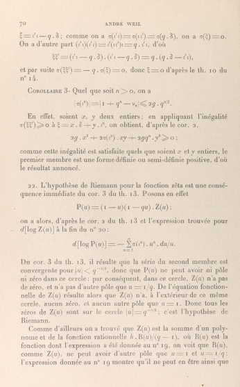 , traduction : Théorème fameux d’André Weil p.70 extraite de )