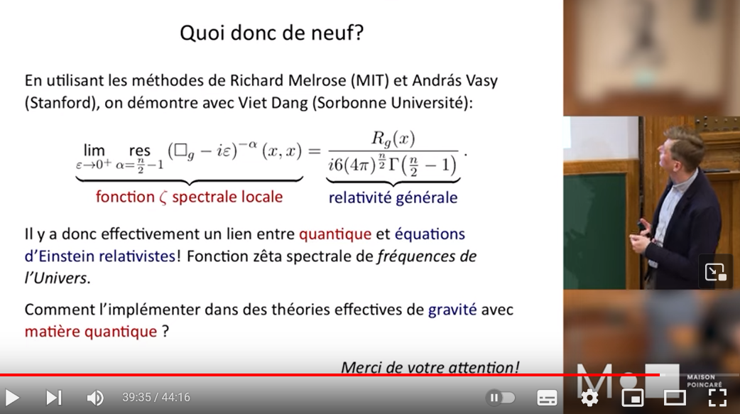 octobre 2022 : Zeta and the archimedean place (dans le cadre du Colloque de Théorie des nombres et physique organisé par le Simons Center for Geometry and Physics - SCGP)
