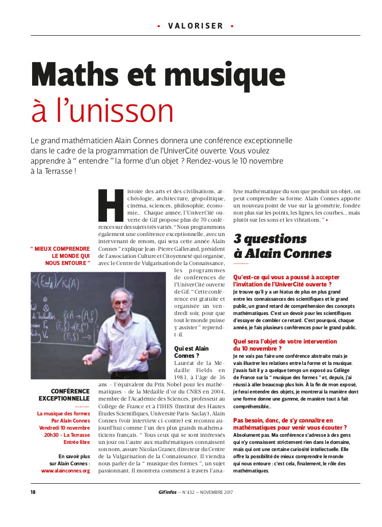 21 avril 2019 : Transcription LaTex de la leçon inaugurale d’Alain Connes au Collège de France