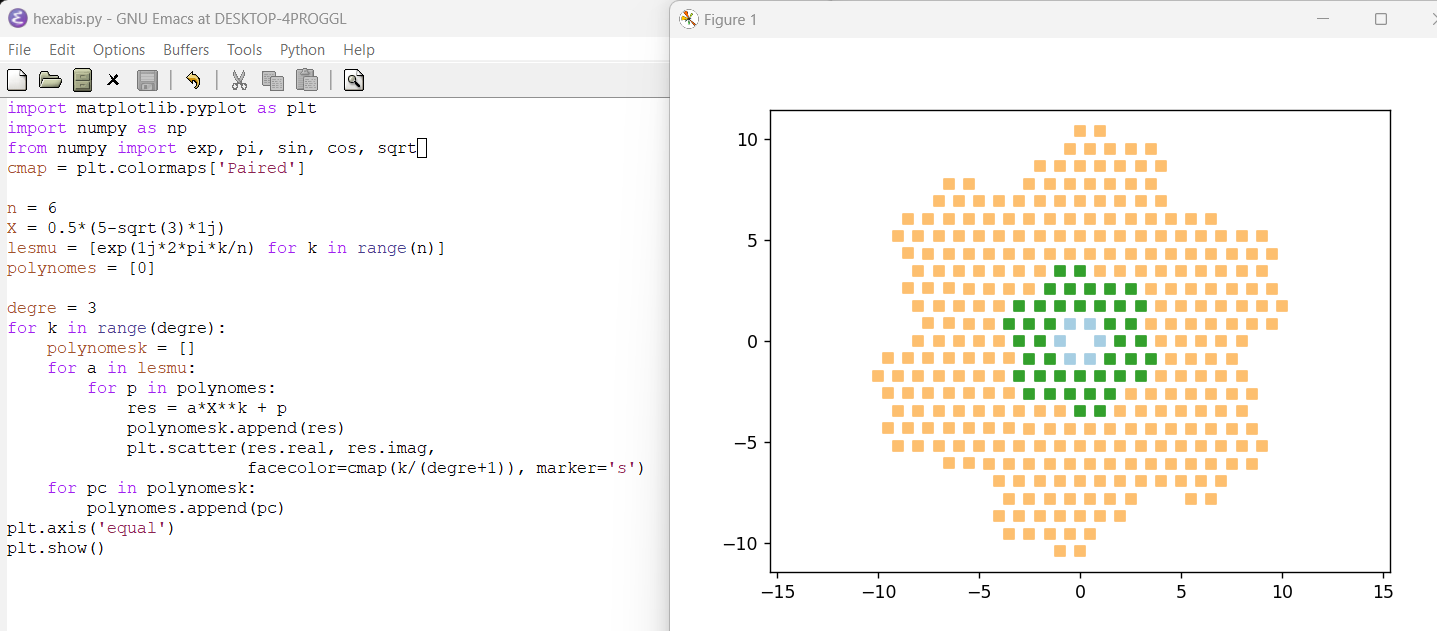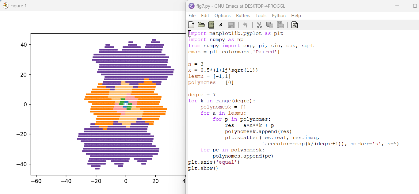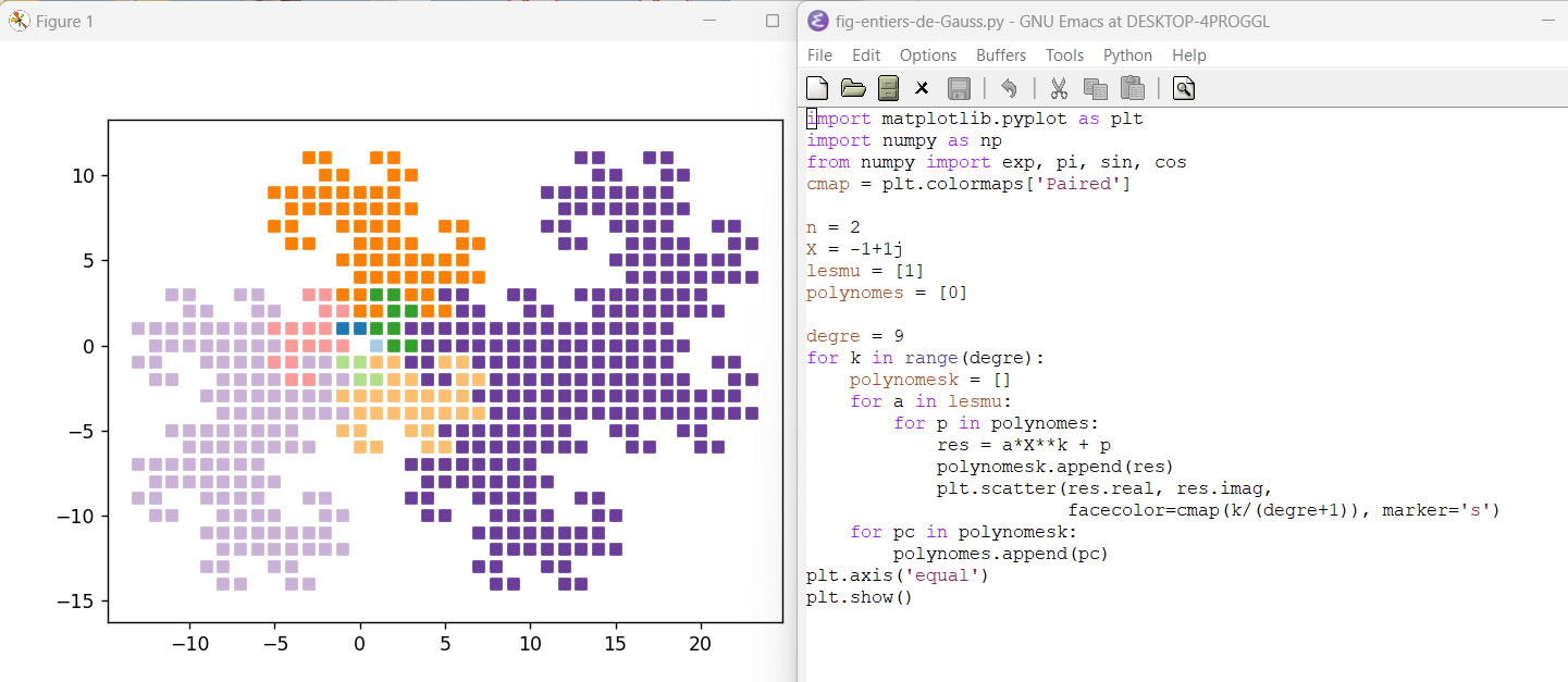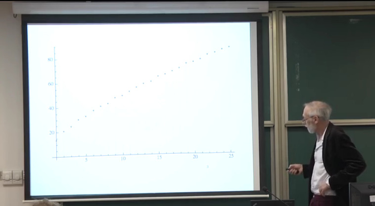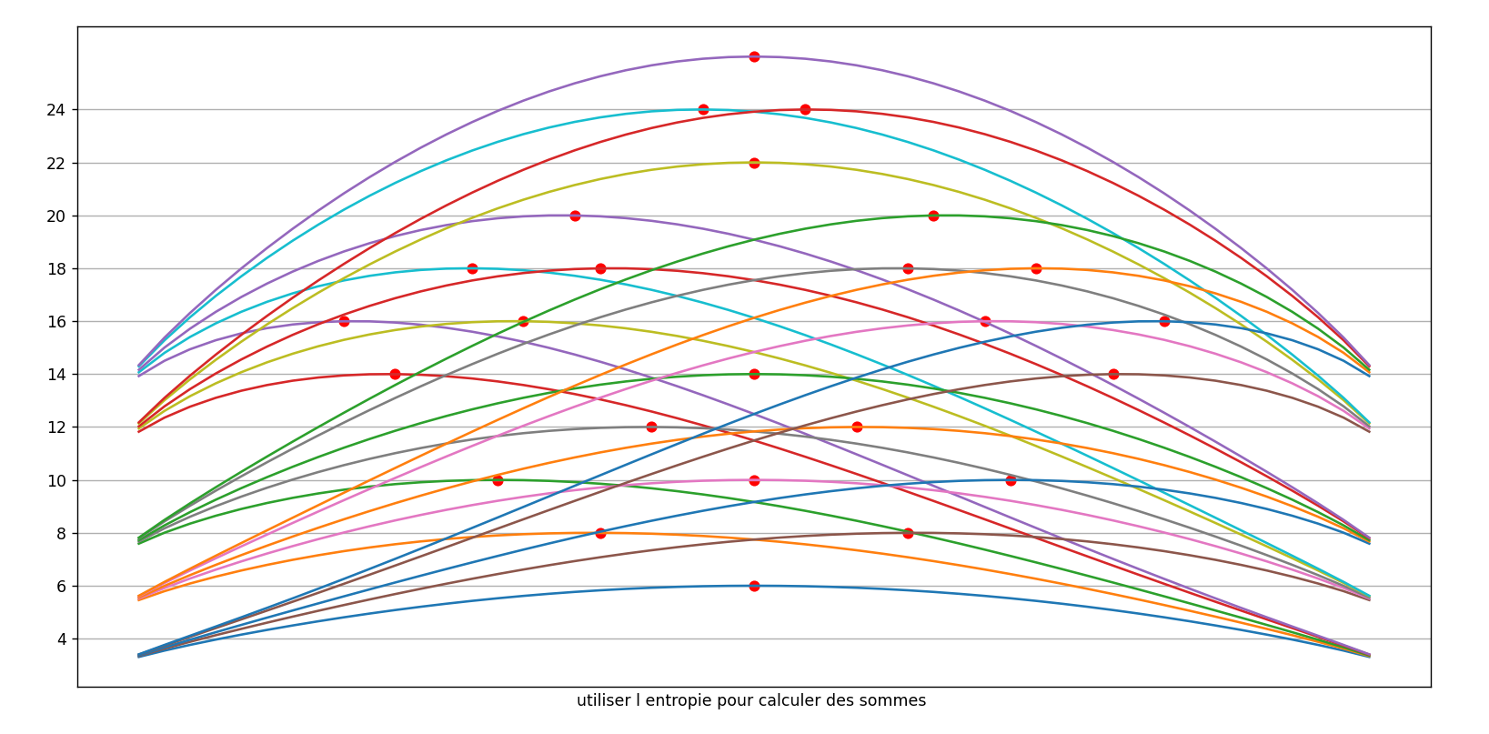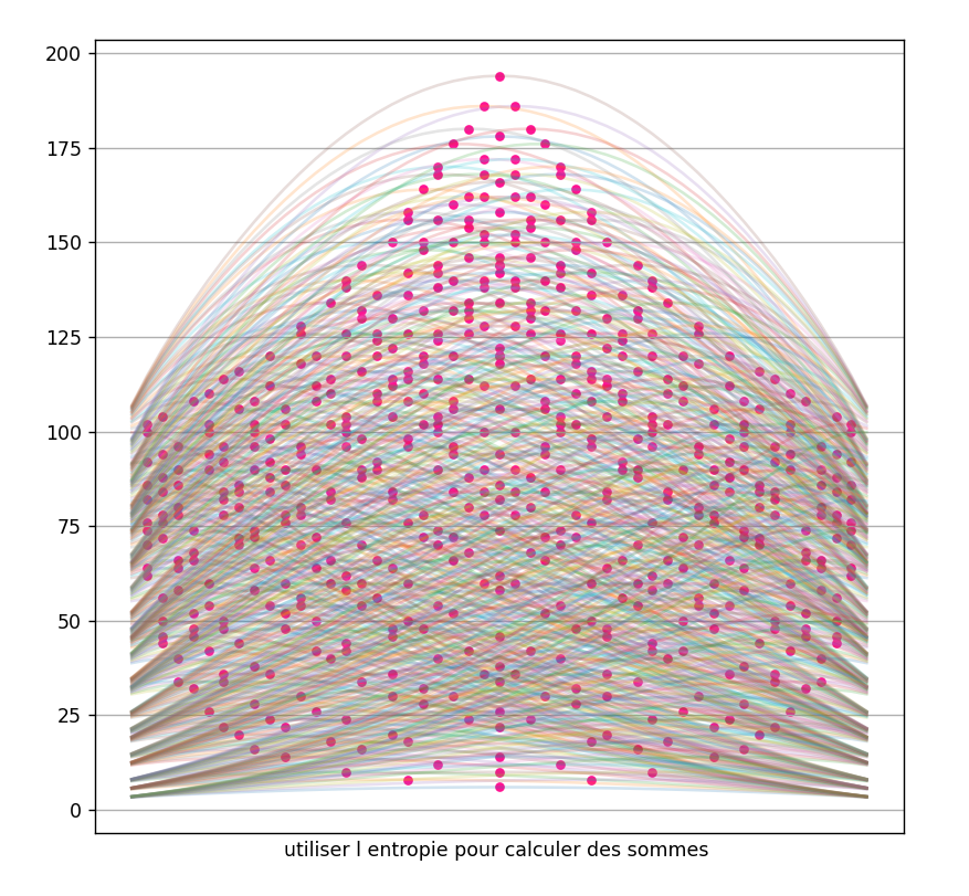 L’ancien maillage que j’avais mis au jour en 2005 (voir aux pages ici et là) peut s’obtenir en calculant des sommes par utilisation de l’entropie de Shannon, entropie intervenant également en physique, ça fait plaisir ! Voici le programme utilisé pour obtenir les maximum "scatterisés" par python ci-dessous (on voit très bien 26=13+13, 24=11+13=13+11, etc.) : Traduction d’une référence de Maxim Kontsevich cité par Alain Connes note écrite en septembre 2025