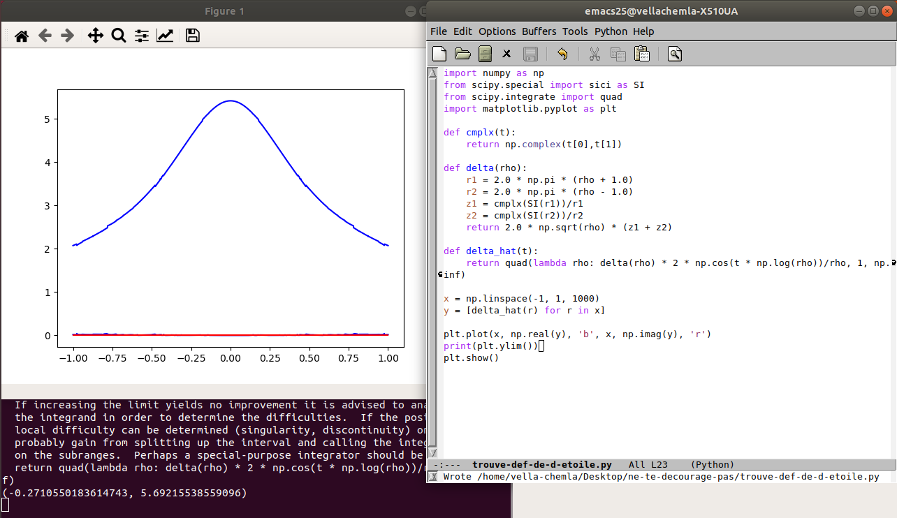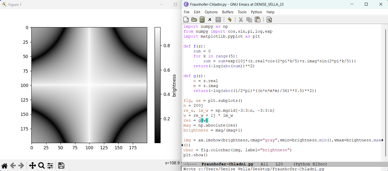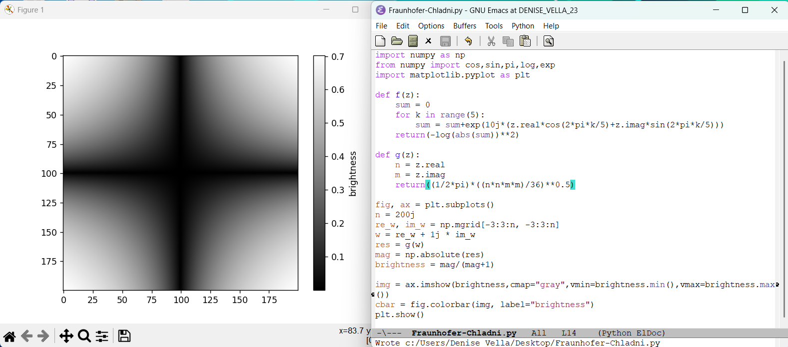 en essayant de calculer les dessins de Chladni de "ma" somme de somme de cosinus qui s’annule seulement pour les nombres premiers. Voici :  Le flot de Kronecker est illustré musicalement ici