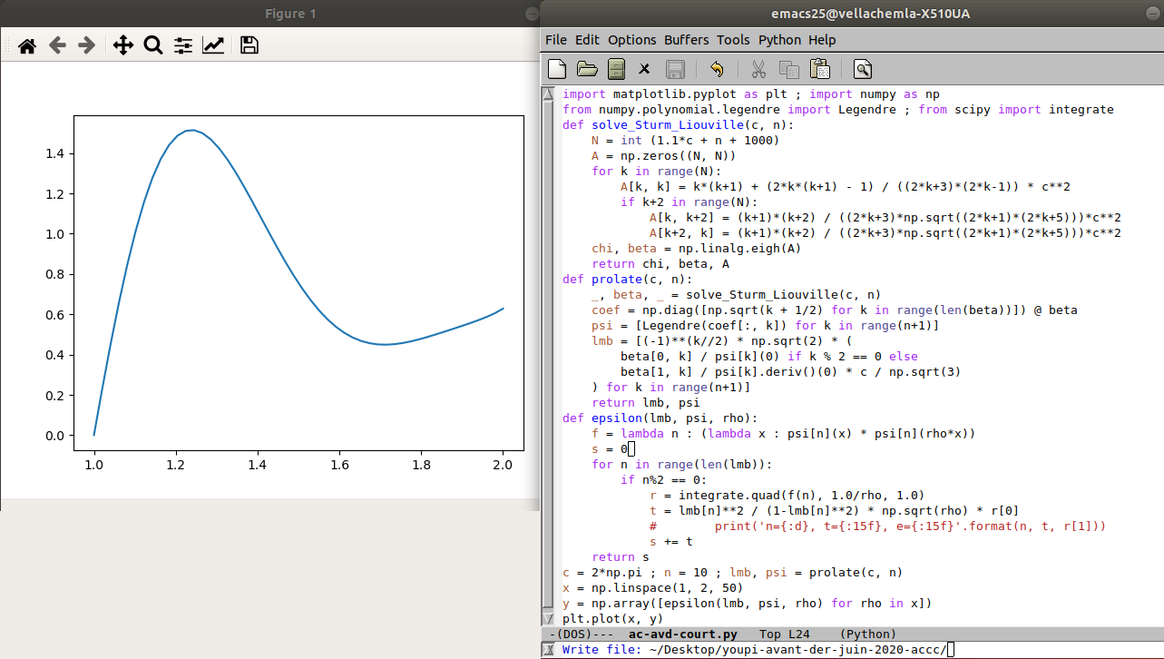 juin 2023 : essayer de programmer les fonctions prolate pour le spectre de la fonction zeta