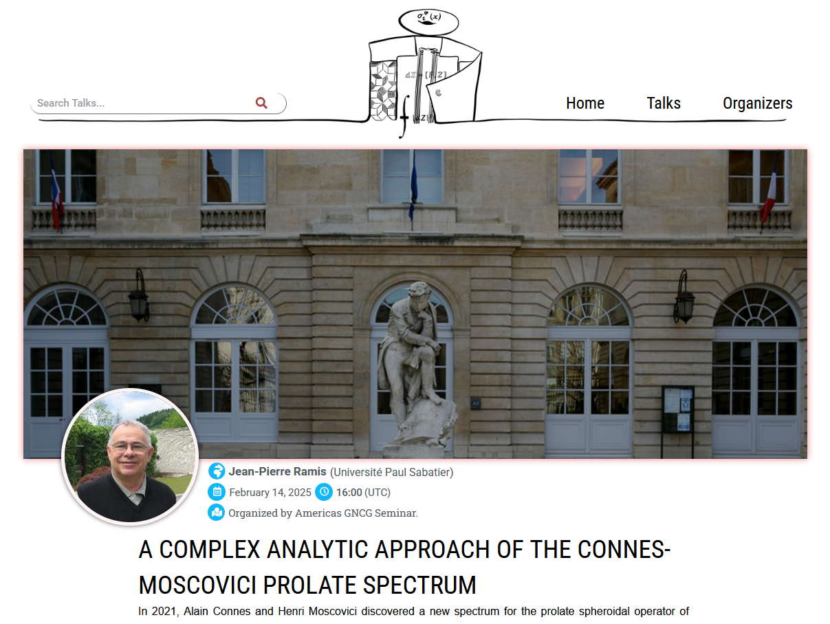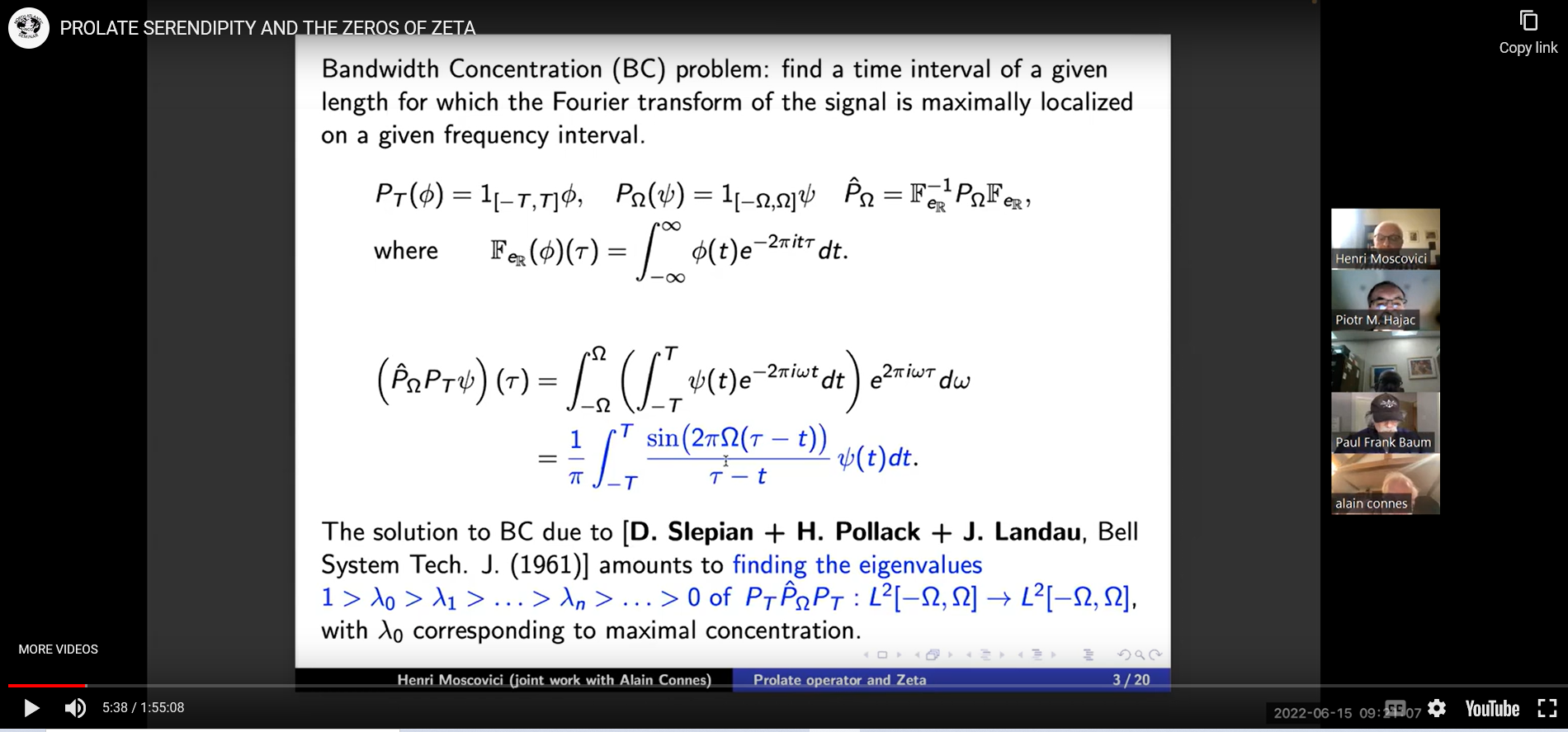 Exposé de Henri Moscovici : Prolate serendipity and the zeros of zeta (dans le cadre du séminaire North Atlantic Noncommutative Geometry Seminar)