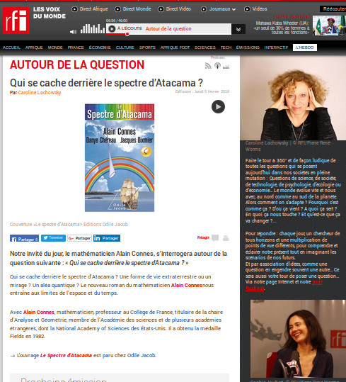 5 février 2023, sur RFI : émission Autour de la question de Caroline Lachowsky Comment les maths créent des concepts fondamentaux ?
