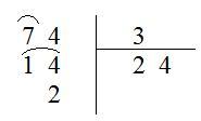 Dans la division ci-dessuus, on vérifie que 74 = (3 x 24) + 2.