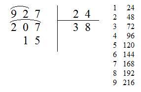 multiplication du diviseur pour trouver plus facilement le chiffre à écrire au quotient à chaque étape.