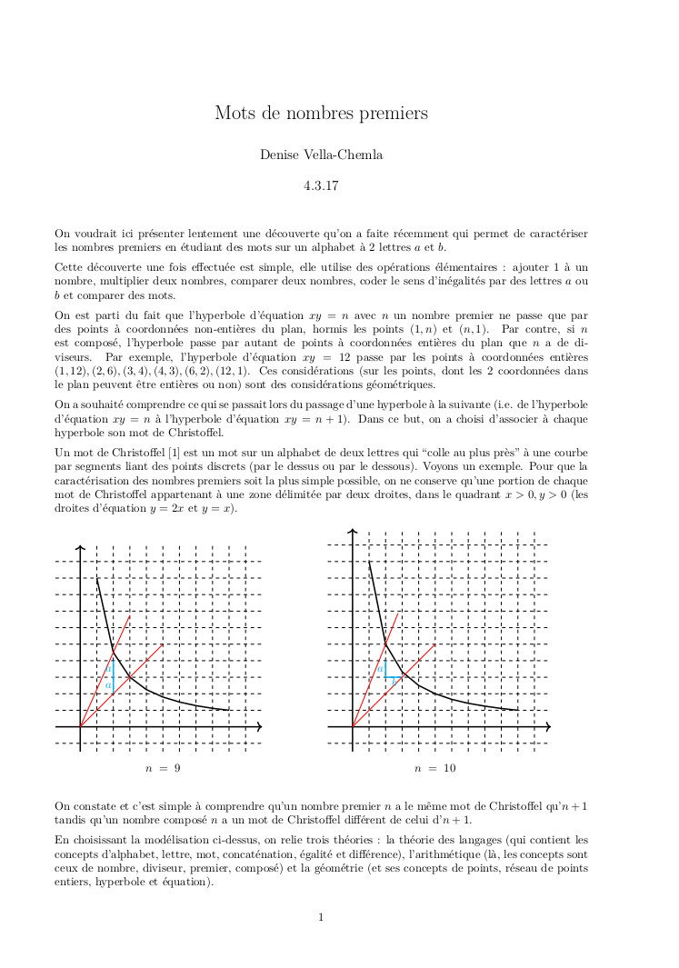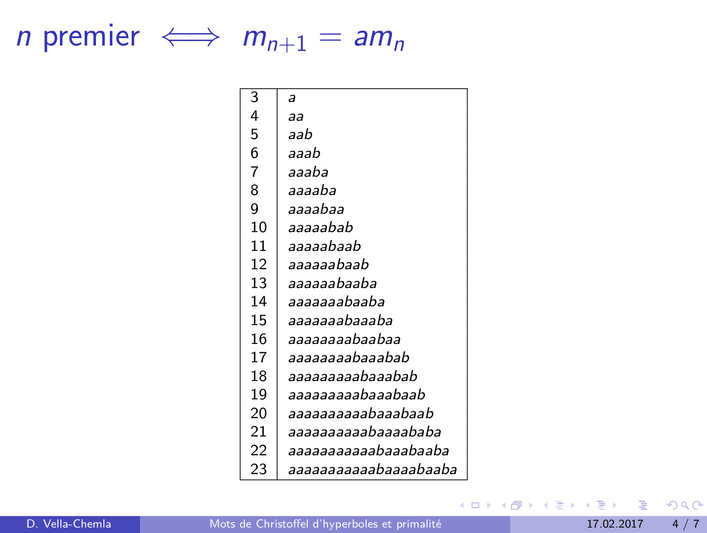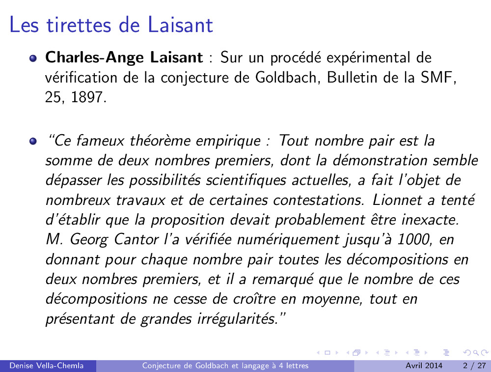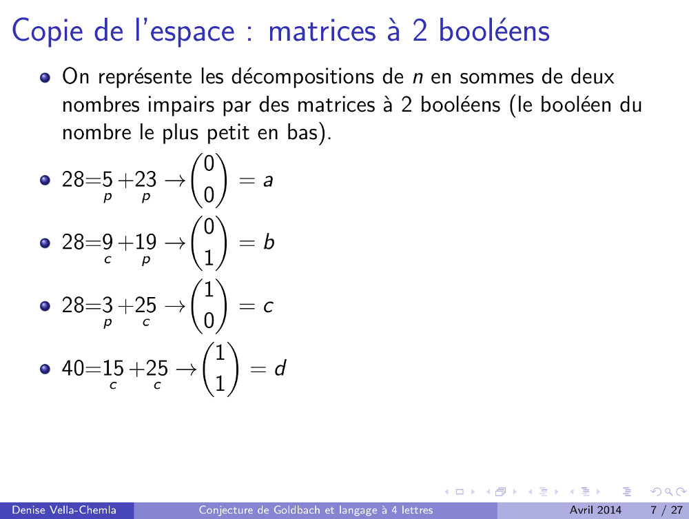 26.04.2009 : Conjecture de Goldbach et mots binaires (74)