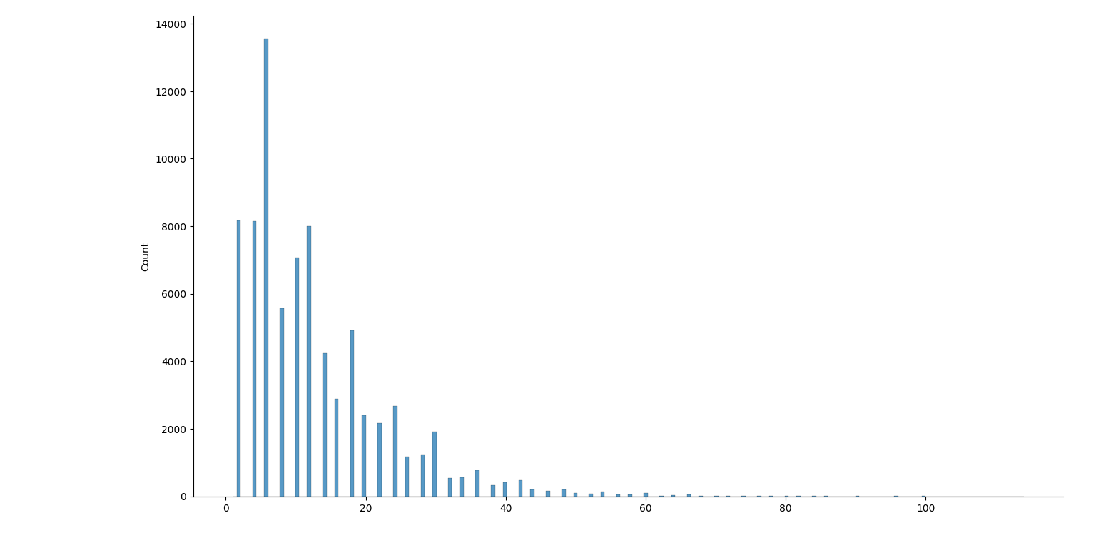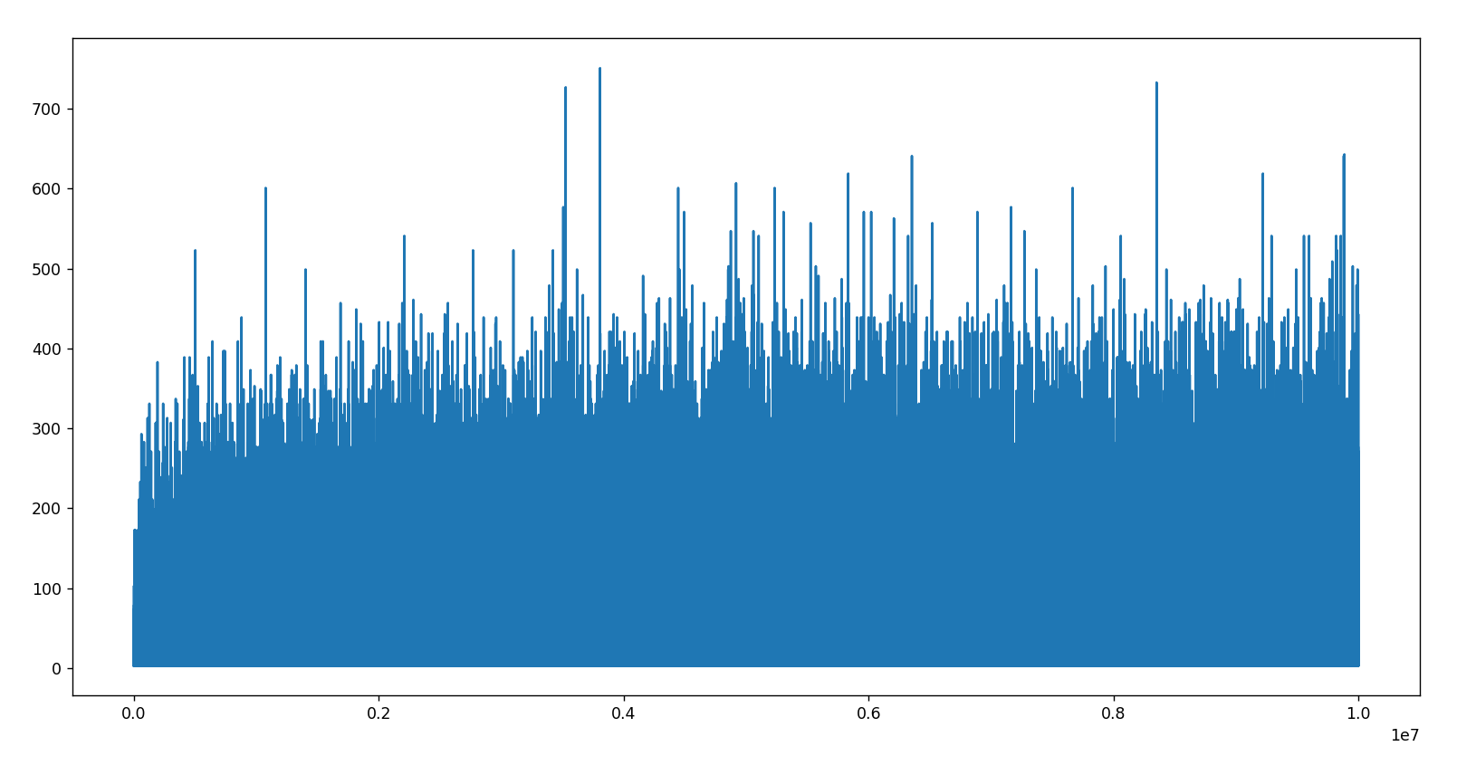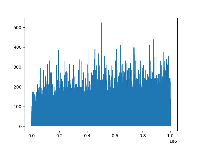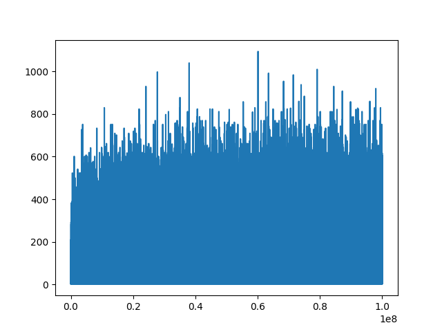 août 2025 : prime gaps : écarts entre deux nombres premiers successifs, histogrammes pour les nombres premiers jusqu’à 106, jusqu’à 107, jusqu’à 108, jusqu’à 109 (des manques dans ce dernier graphique, le package seaborn a du mal)