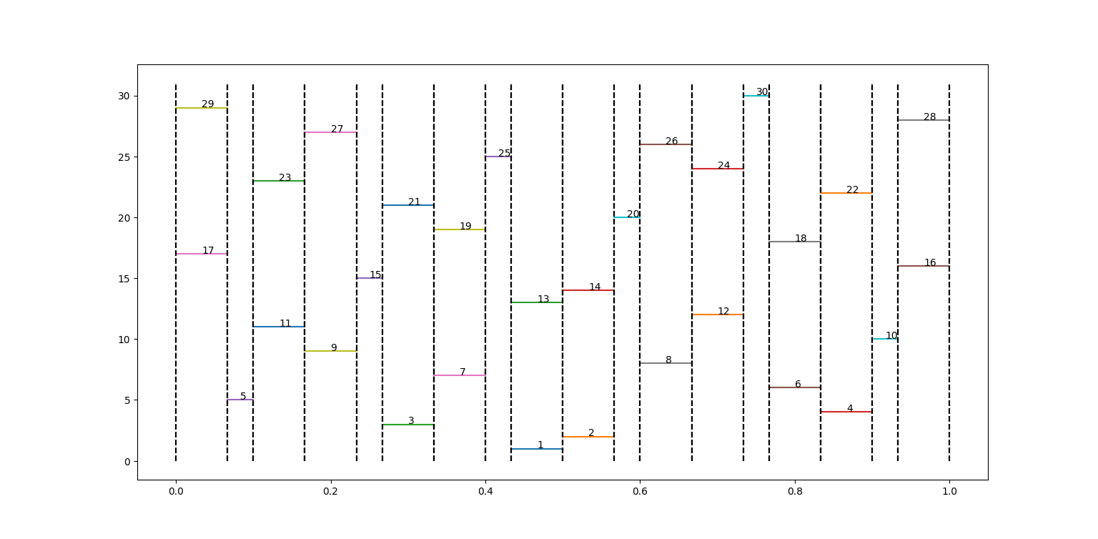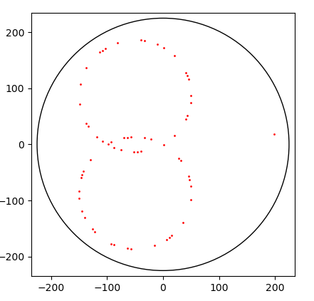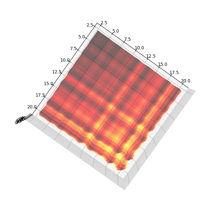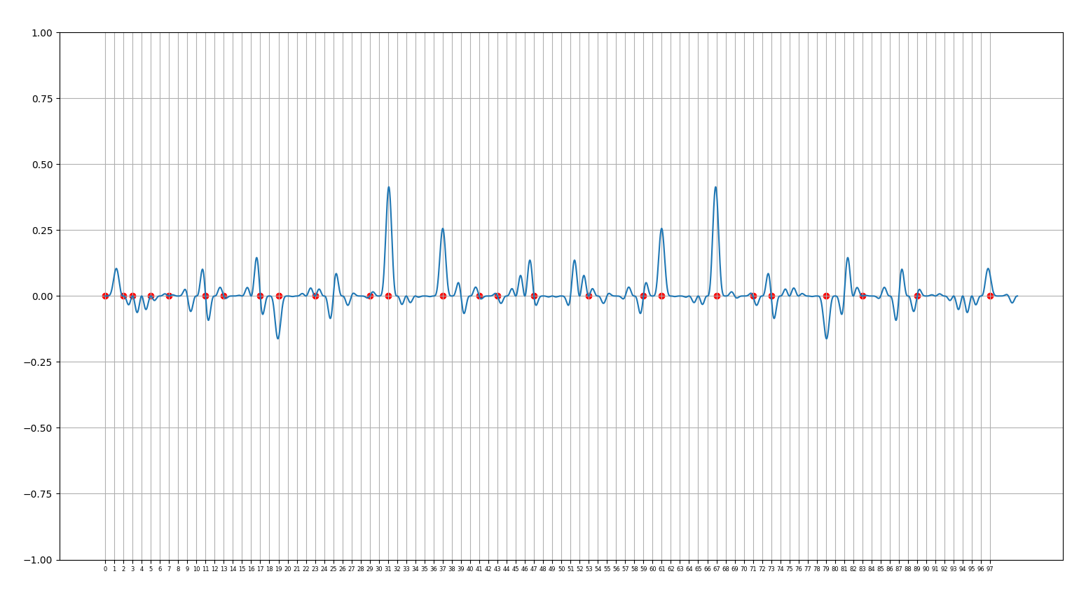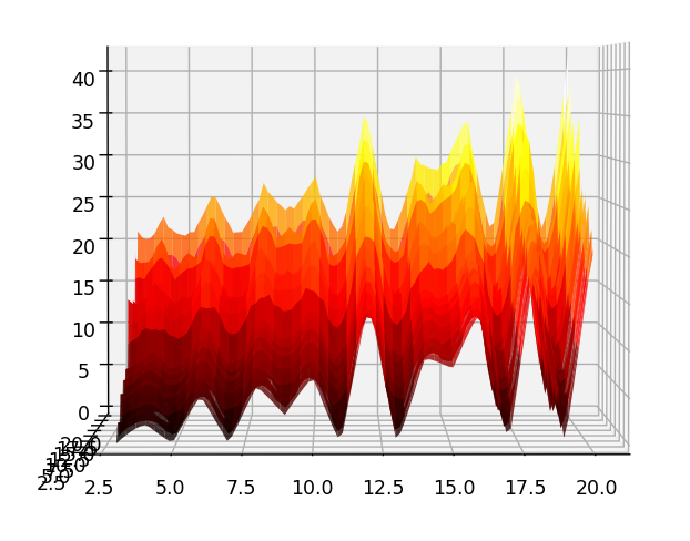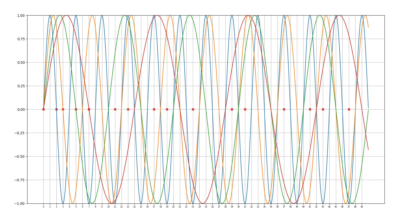 25.02.25 : L’ancien maillage que j’avais mis au jour en 2005 (voir aux pages ici et là) peut s’obtenir en calculant des sommes par utilisation de l’entropie de Shannon, entropie intervenant également en physique, ça fait plaisir ! Voici le programme utilisé pour obtenir les maximum "scatterisés" par python ci-dessous (on voit très bien 26=13+13, 24=11+13=13+11, etc.) :