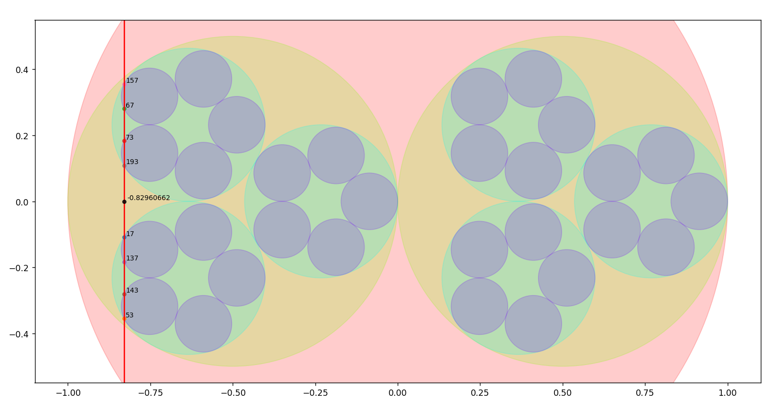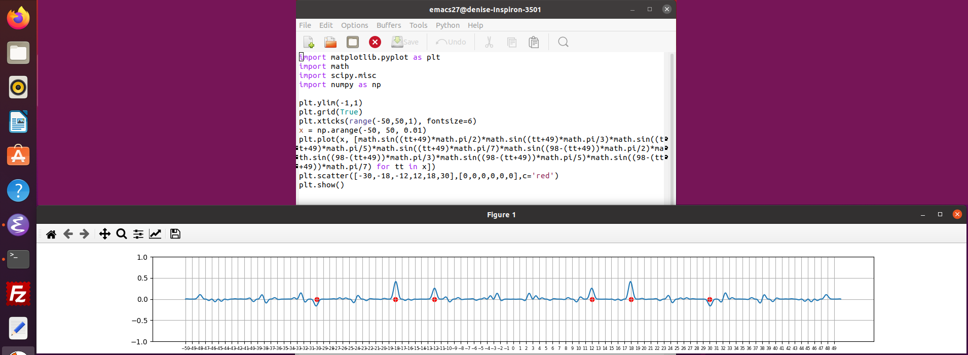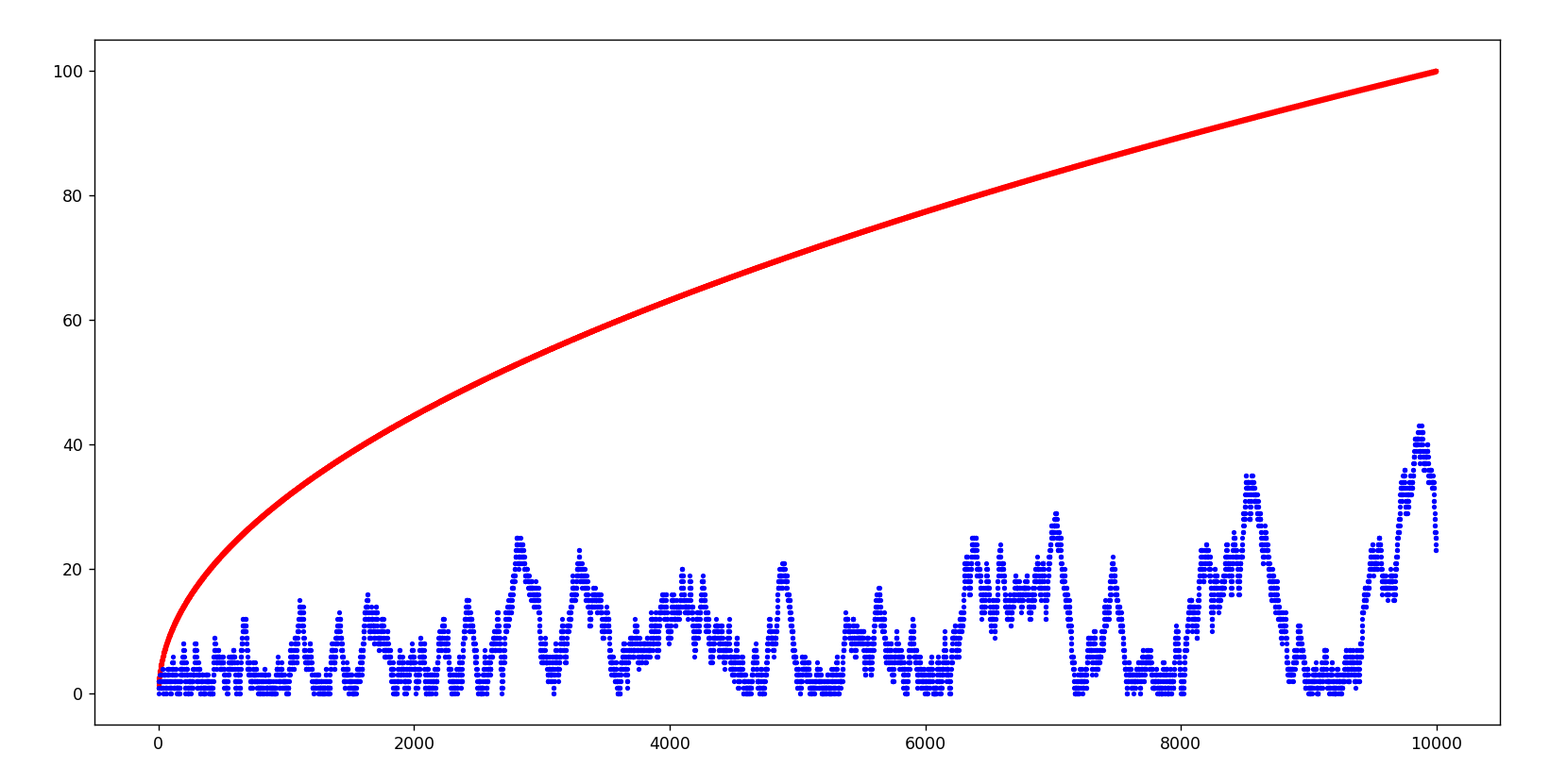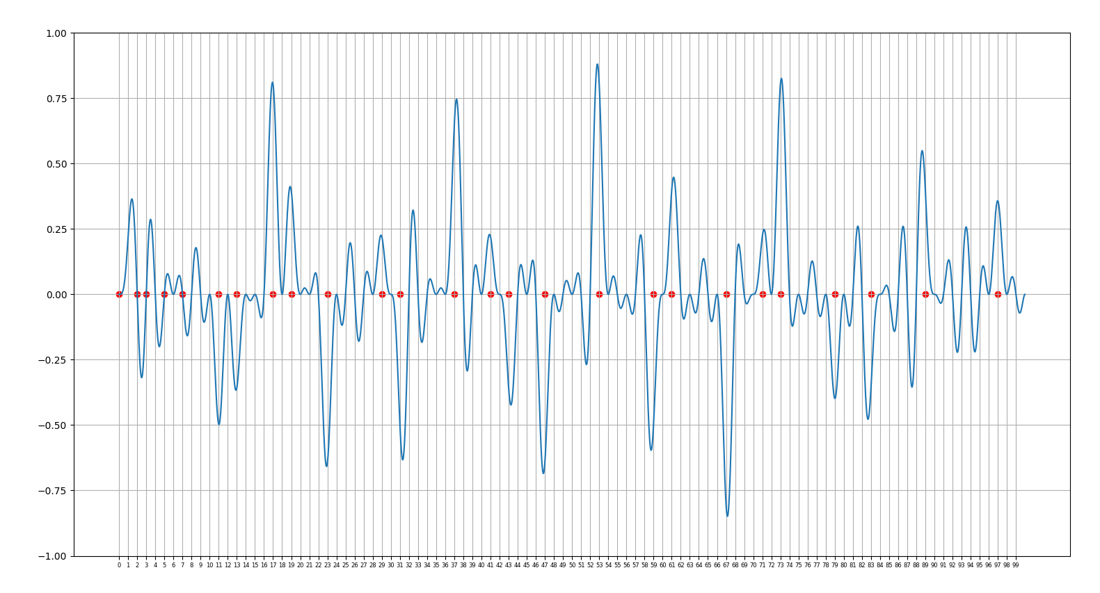 25.02.25 : L’ancien maillage que j’avais mis au jour en 2005 (voir aux pages ici et là) peut s’obtenir en calculant des sommes par utilisation de l’entropie de Shannon, entropie intervenant également en physique, ça fait plaisir ! Voici le programme utilisé pour obtenir les maximum "scatterisés" par python ci-dessous (on voit très bien 26=13+13, 24=11+13=13+11, etc.) :
