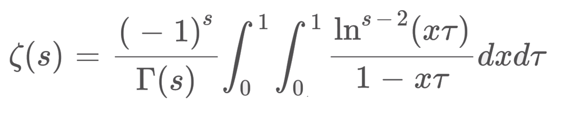 formule intégrale sur le carré unité pour ζ trouvée dans une vidéo ici