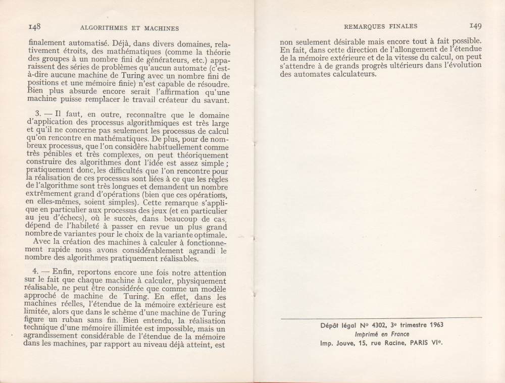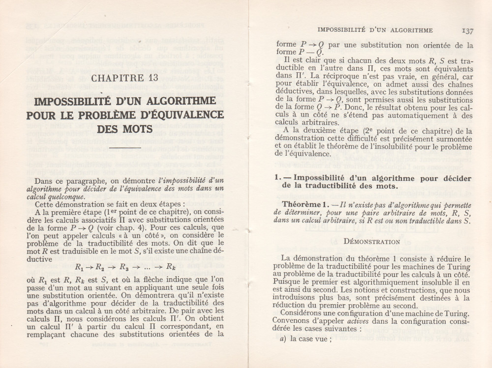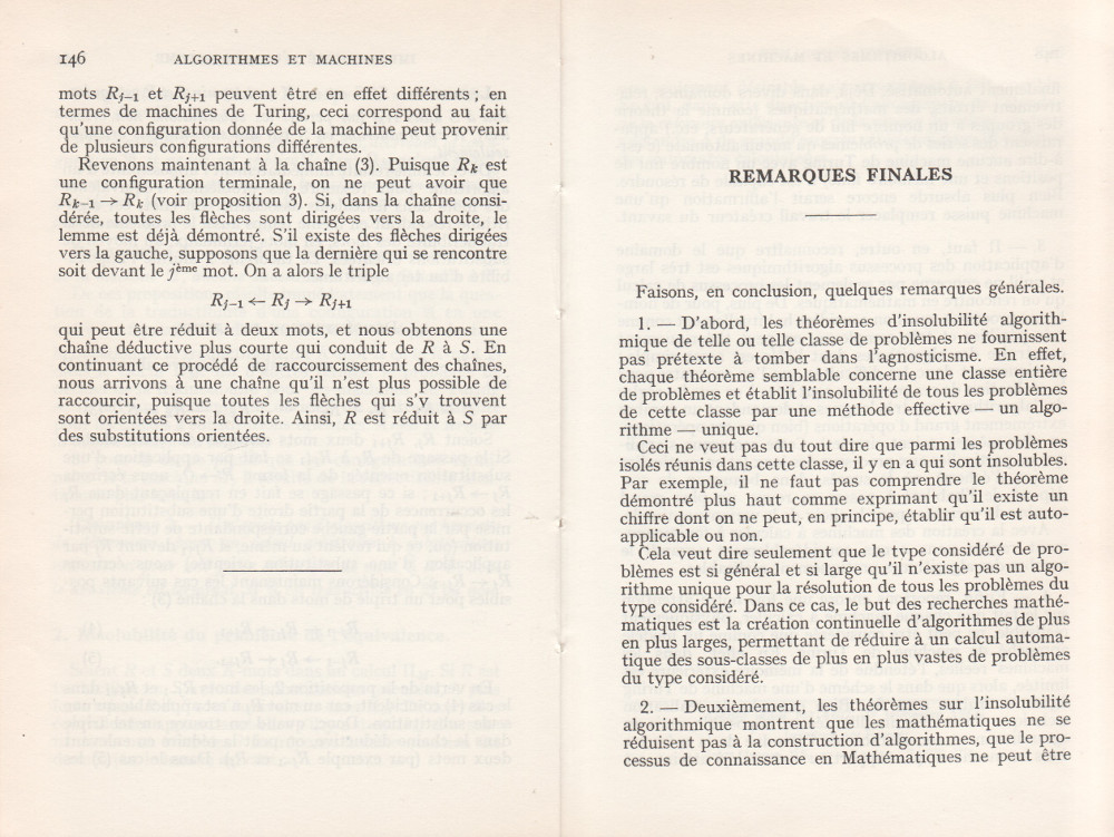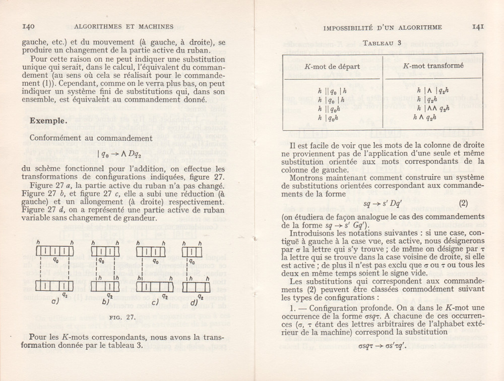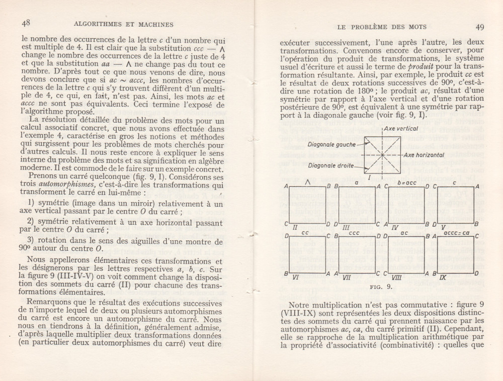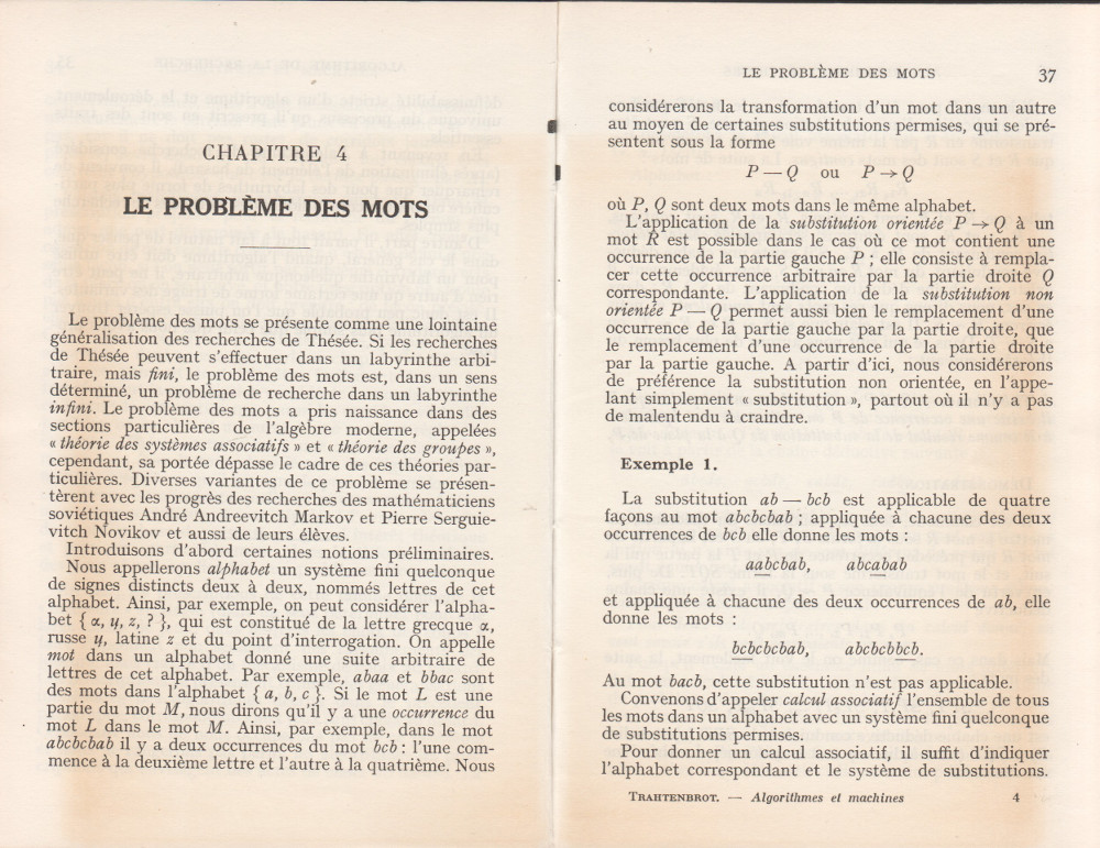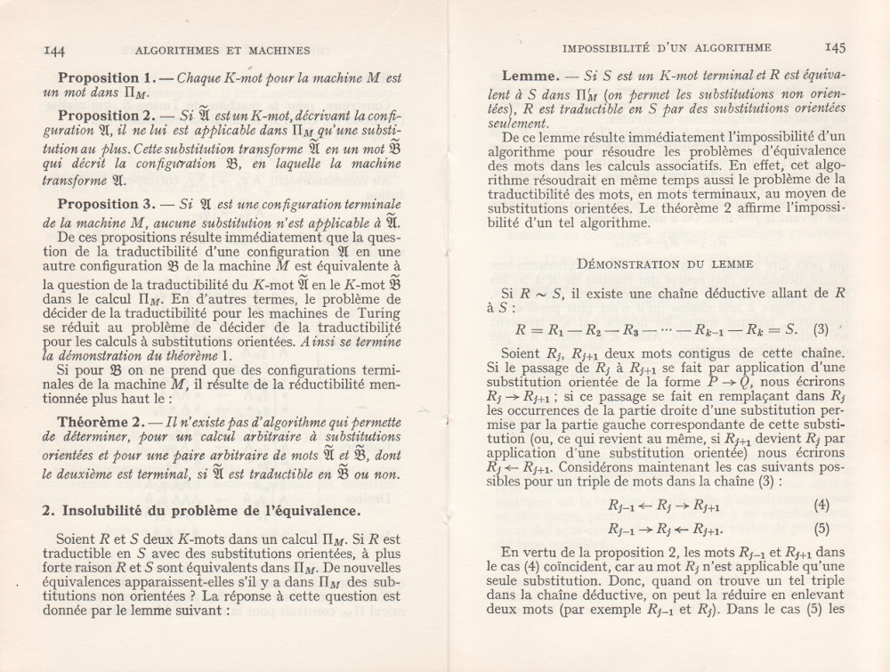 (André Lentin est un mathématicien, logicien et informaticien théoricien français né le 9 novembre 1913 à Médéa en Algérie et mort le 9 janvier 2015 dans le 15e arrondissement de Paris. Son article est à mettre en lien avec le petit livre de Trahtenbrot (Algorithmes et machines à calculer) que m’avait offert Yves Césari, mon professeur d’Algorithmique, alors que j’étais en seconde année de Deug Mathématiques appliquées et Sciences sociales, à l’Université Paul Valéry de Montpellier, et dont on trouvera les scans du chapitre Le problème des mots dans la page de Notes.)