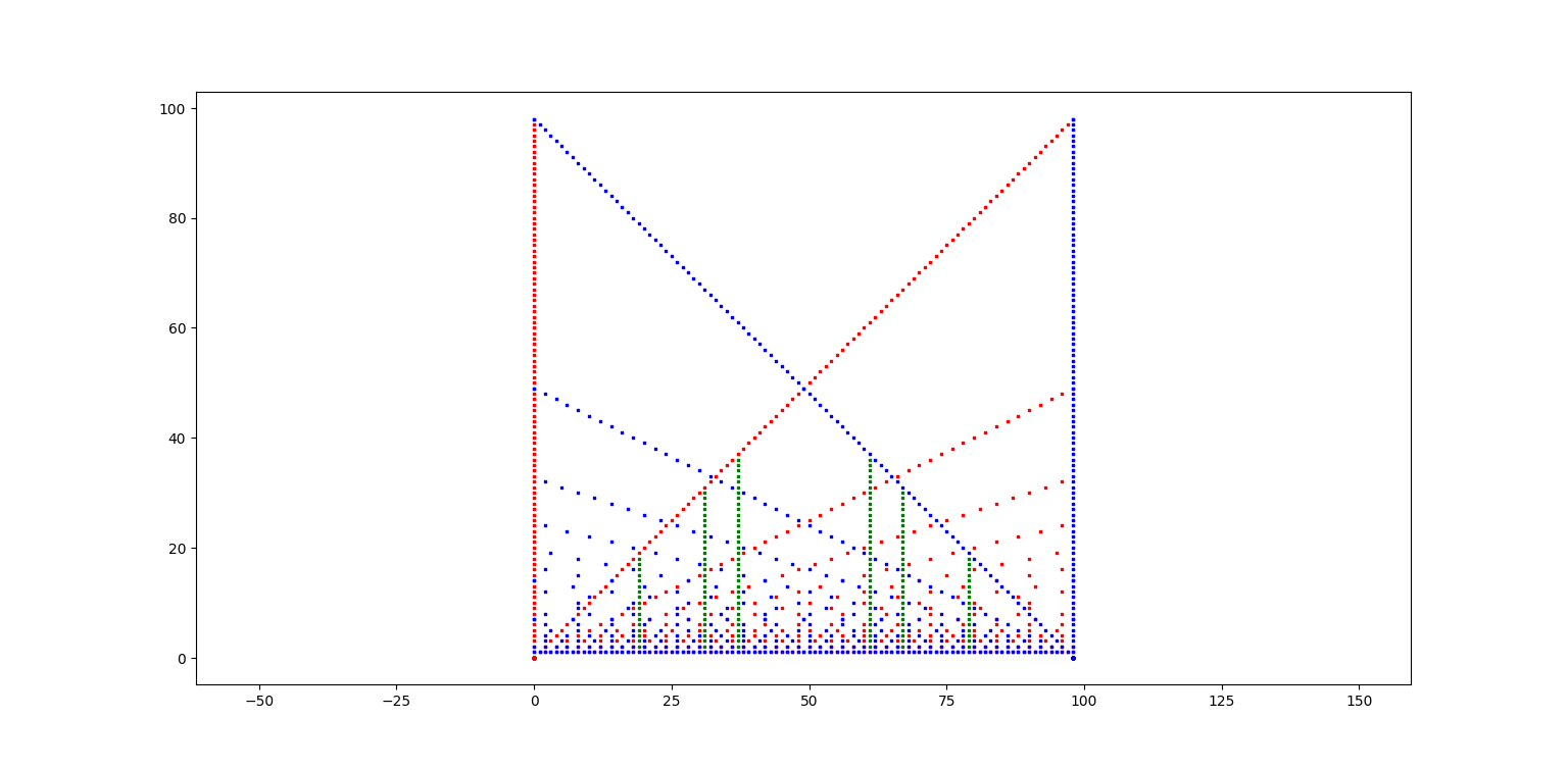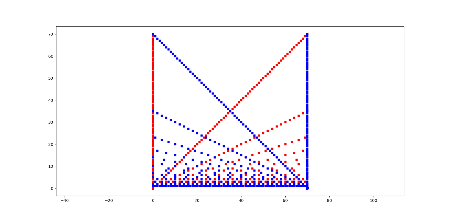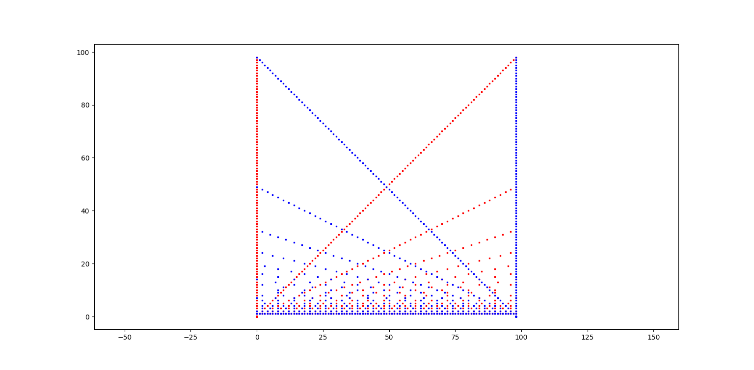 conclusion : ça ne va pas, il y a plein de nombres pairs dont aucun point ne se projette sur la diagonale, mauvaise idée.