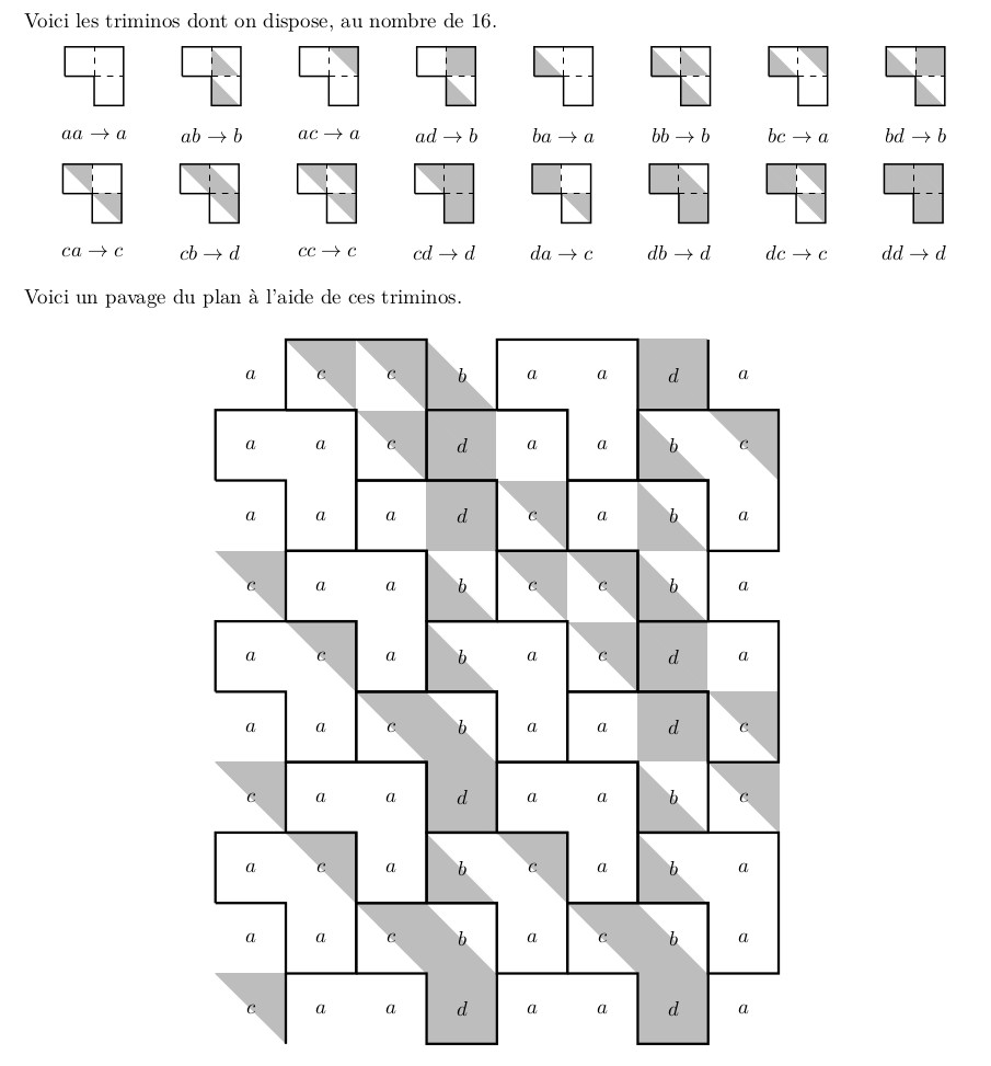 et illustration de ce que sont des pavages périodiques avec des tuiles de même forme mais de plus en plus grosses