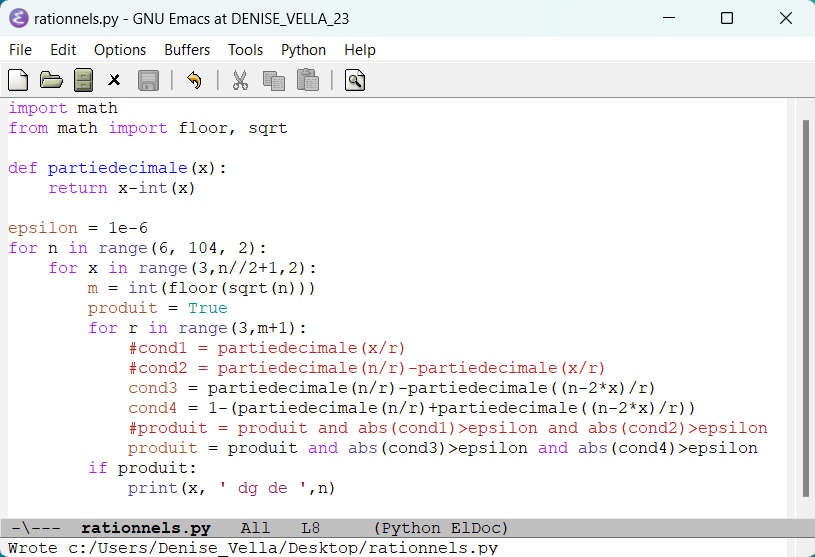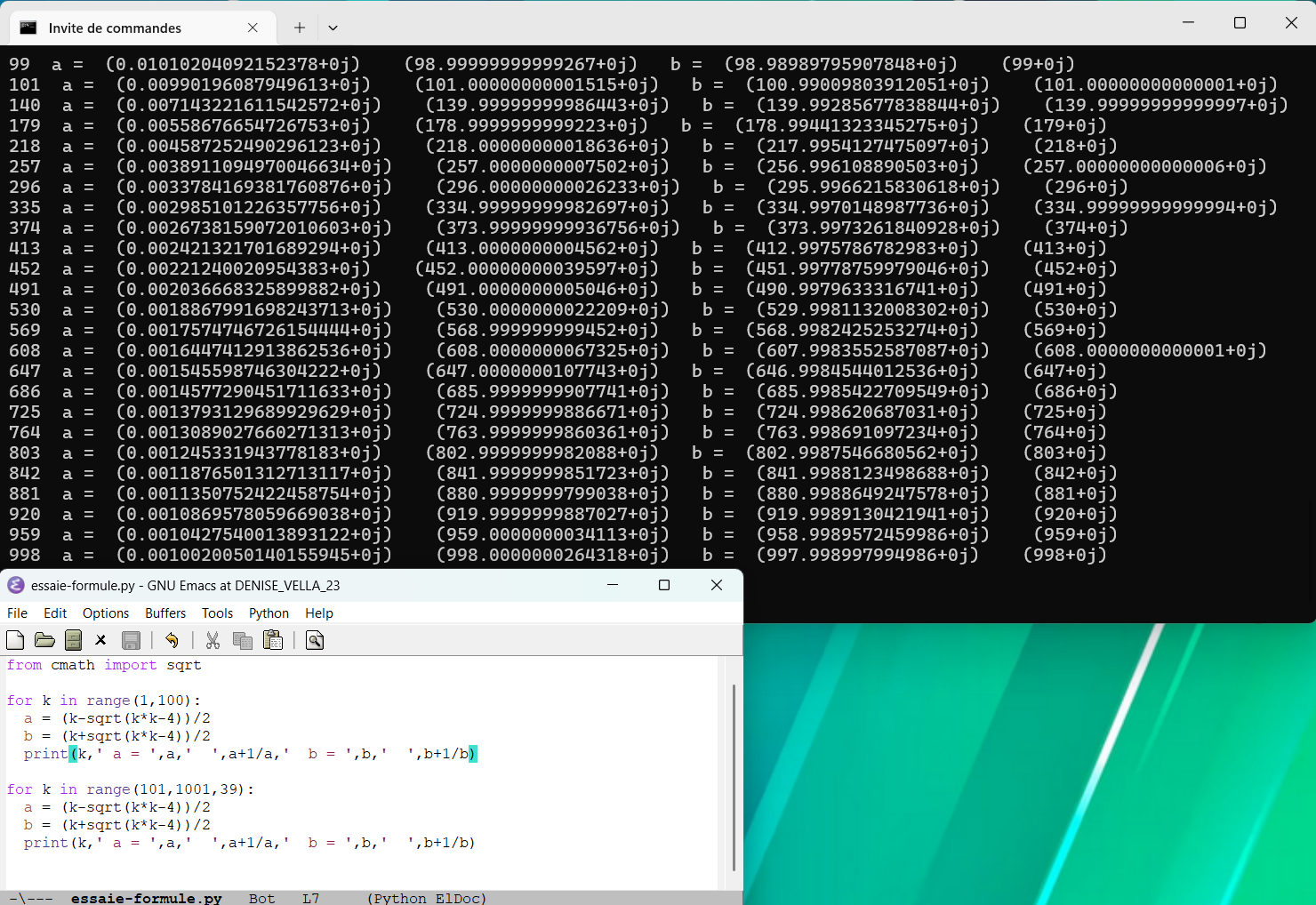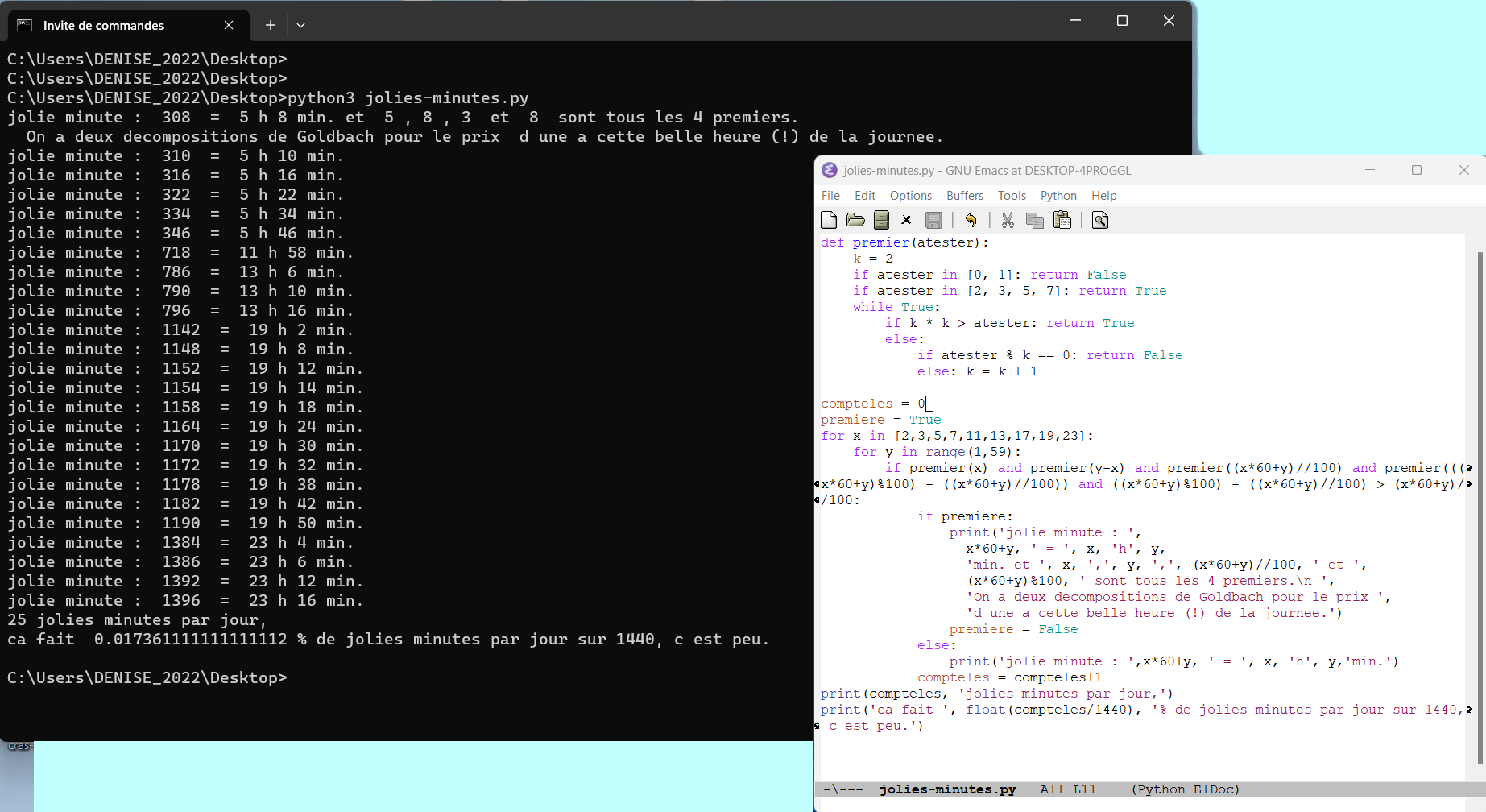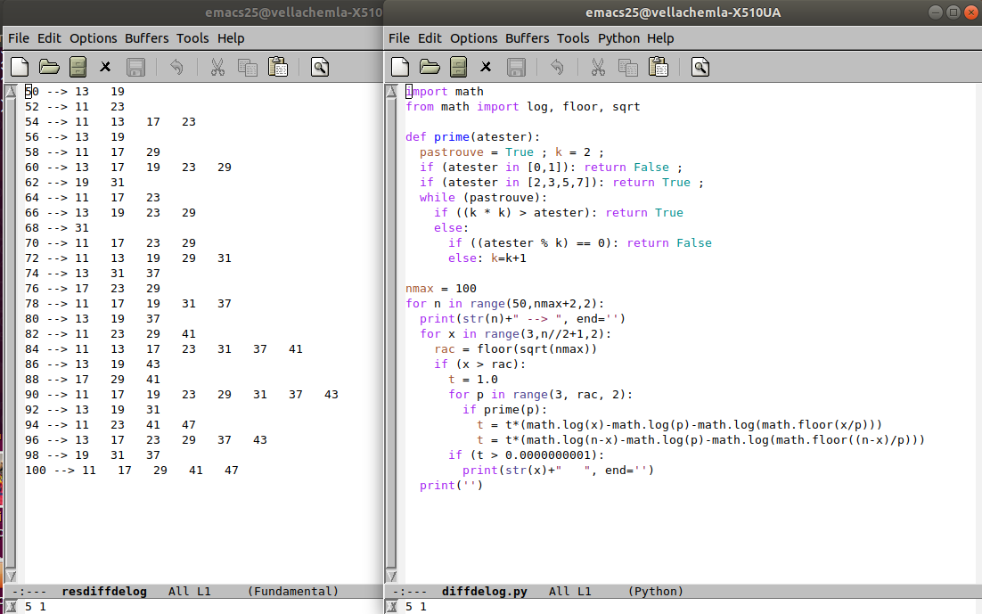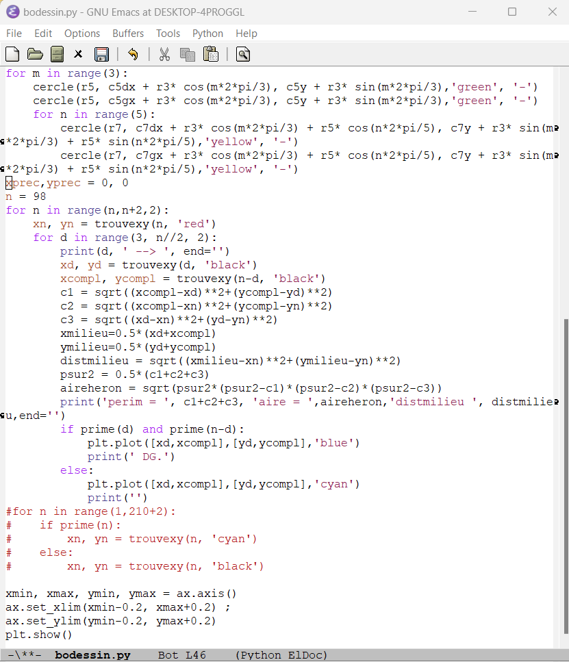 Programmation de la méthode de recherche des décomposants de Goldbach utilisant des mots binaires (un décomposant de Goldbach d’un entier lui permet de vérifier la conjecture de Goldbach) (58)