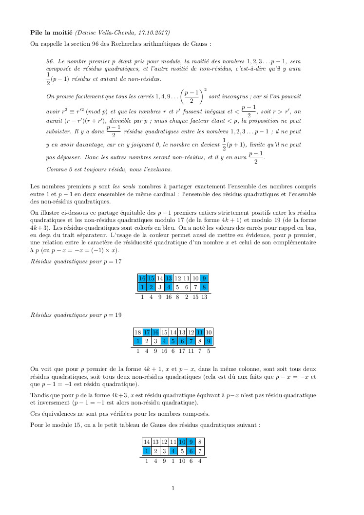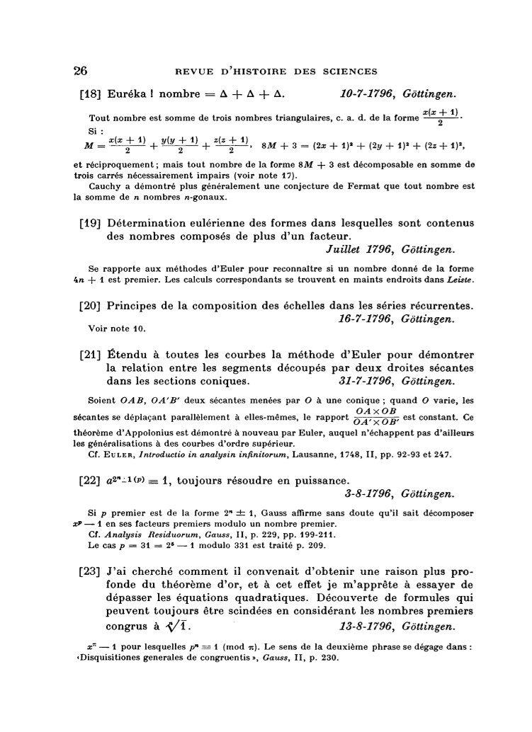 01.10.2005 : Extraits des Recherches arithmétiques de Gauss