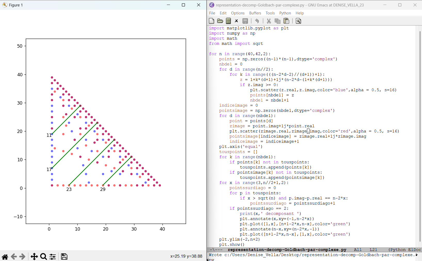 juin 2025 : décomposants de Goldbach en géométrie du plan complexe