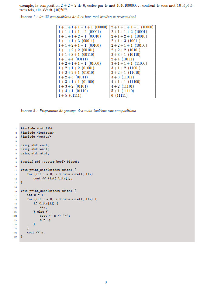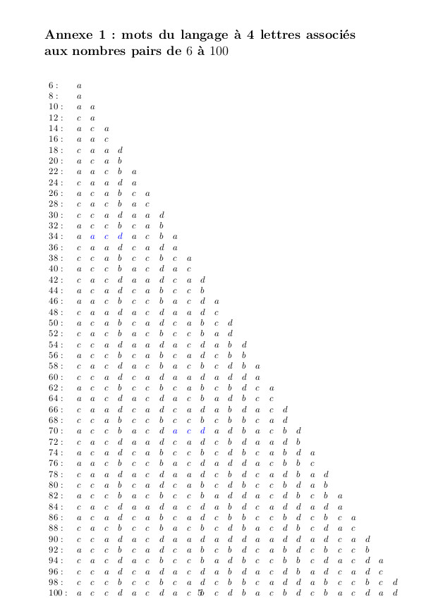 Programmation de l’algorithme de calcul des mots associés à un nombre pair (57)