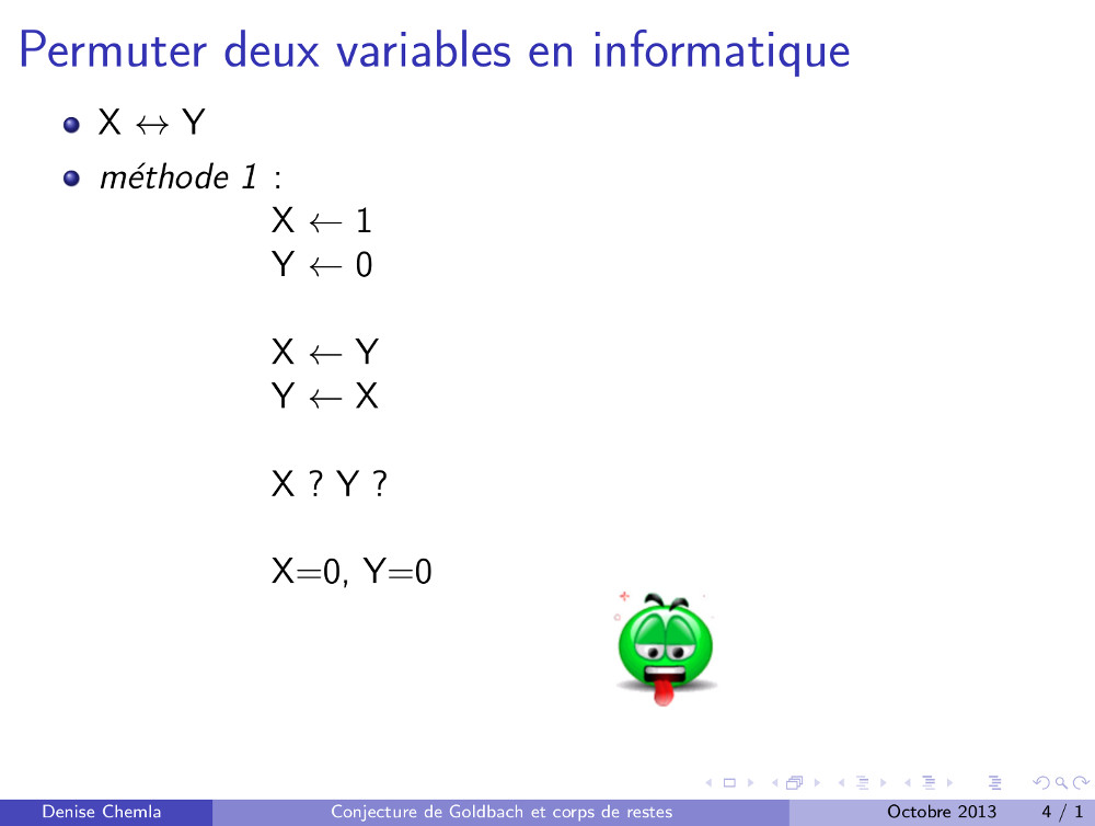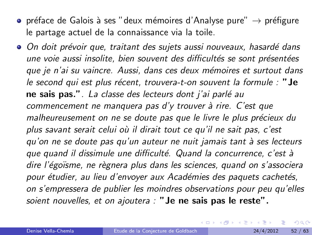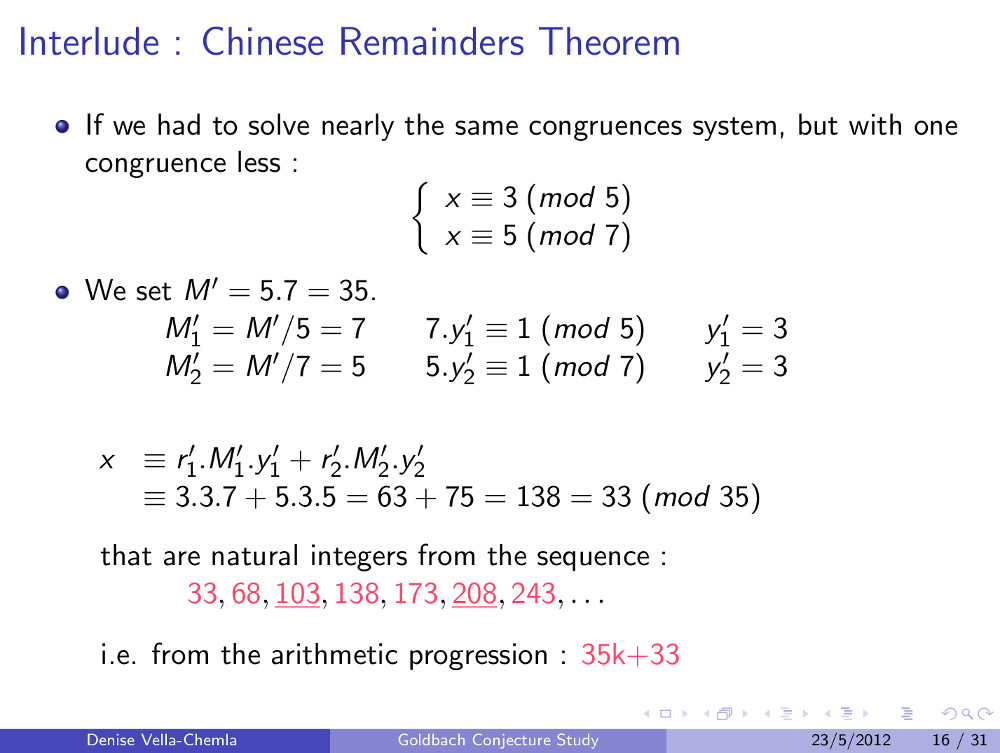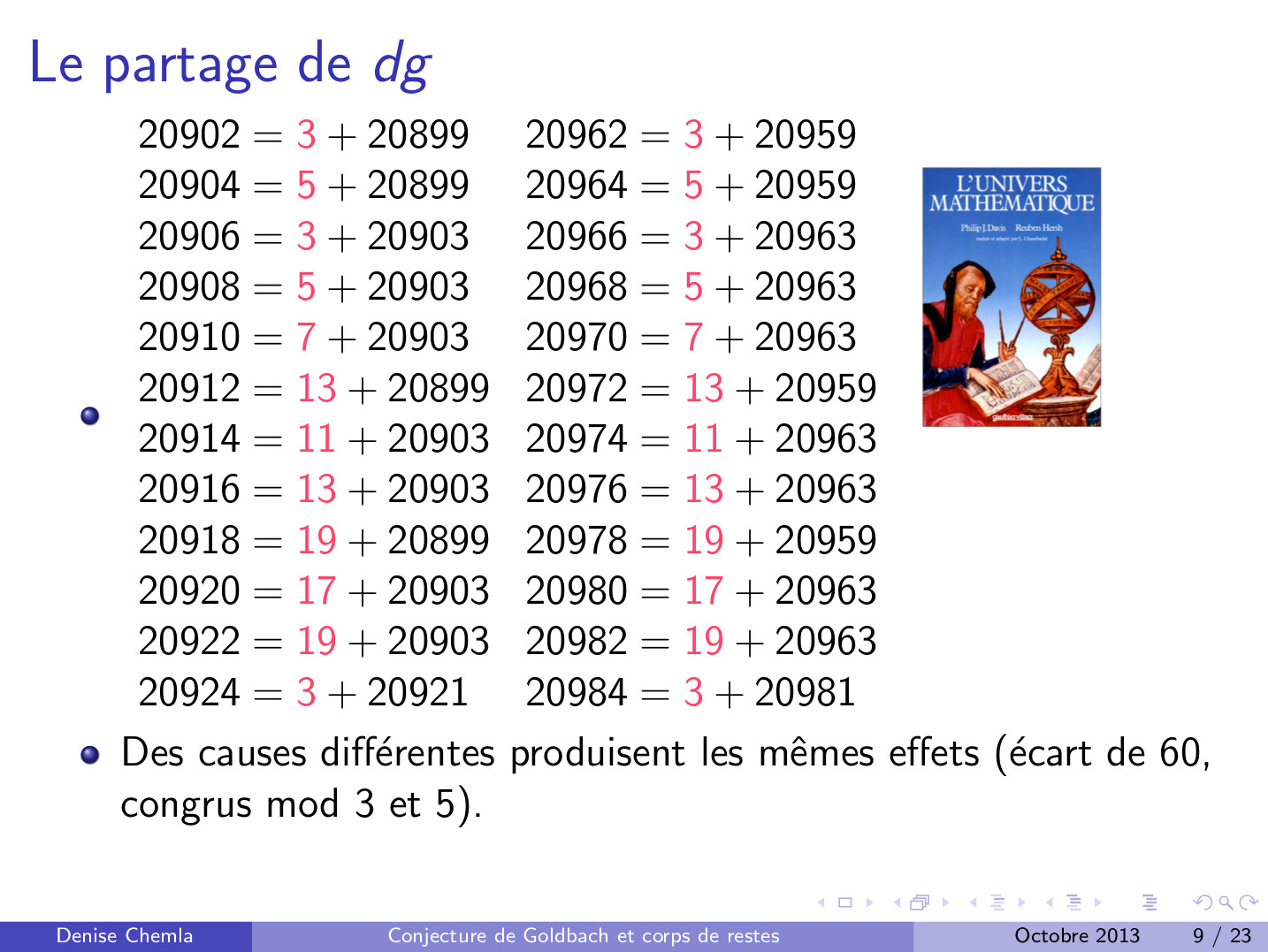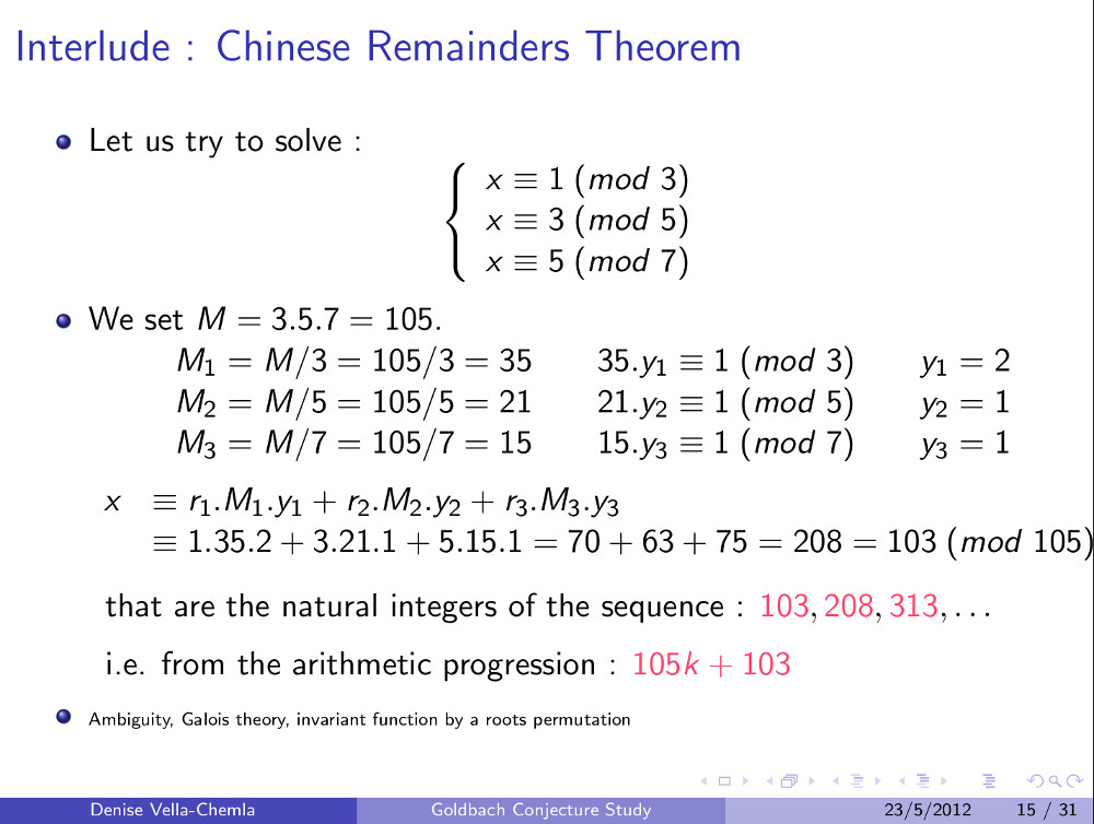 Diapositives (8.05.2009) : Conjecture de Goldbach et ensembles de restes modulaires (79)