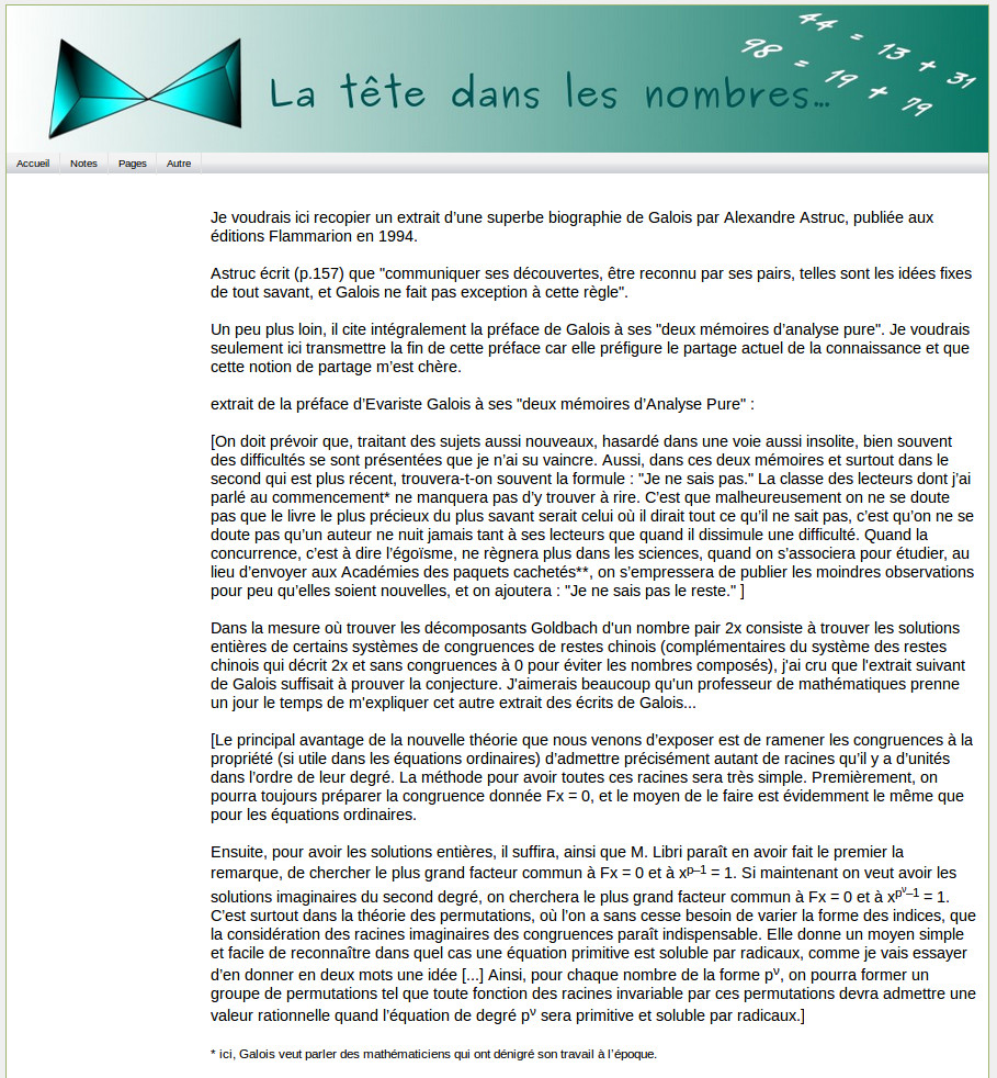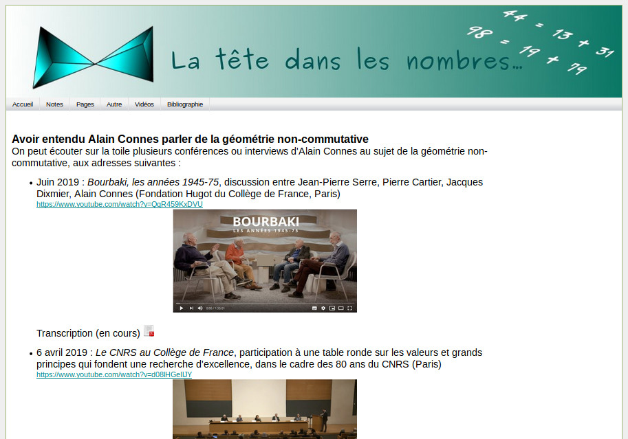 2005 à 2008 2009 à 2010 2011 2012 (avant oct.) nov. 2012 à juil. 2013 juil. 2013 à avr. 2014 avr. à oct. 2014 2015 2016 2017 2018 2019 Chouettes souvenirs juin 2019-juin 2020 2020 transc-trad-LaTex 2020 recherches 2021 2022 2023 2024