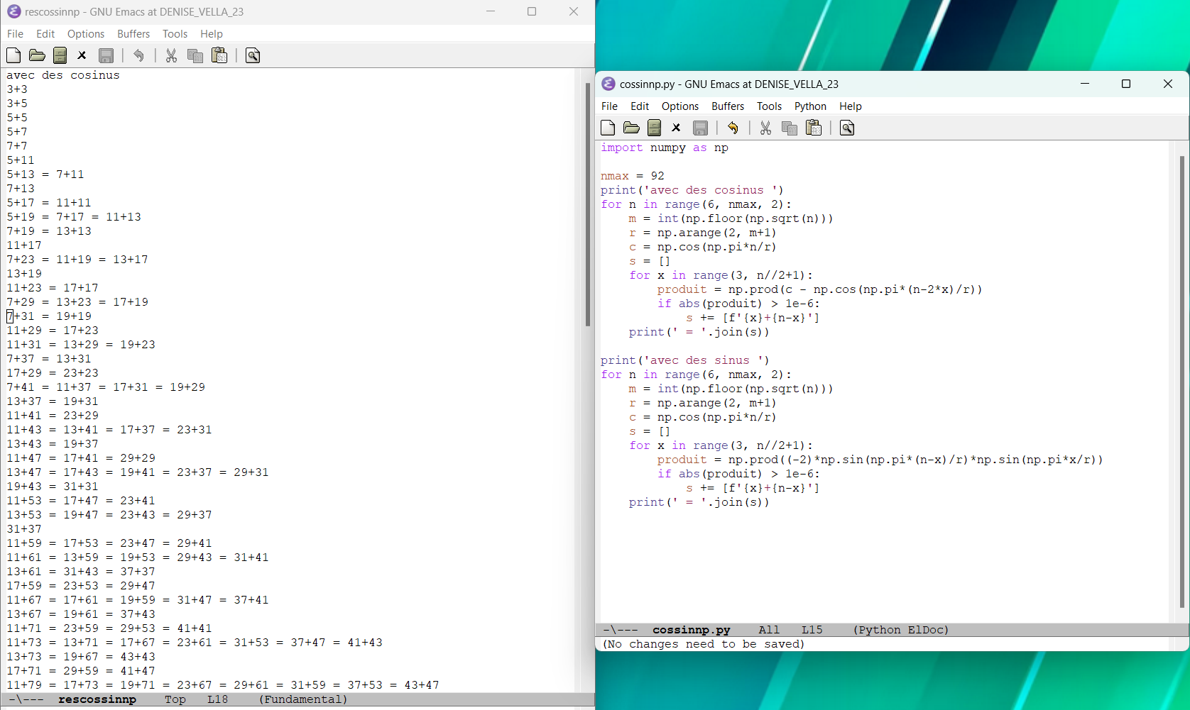 27.05.2009 : Conjecture de Goldbach, Conjecture des nombres premiers d’écart 2, test de primalité et sinusoïdes (86)