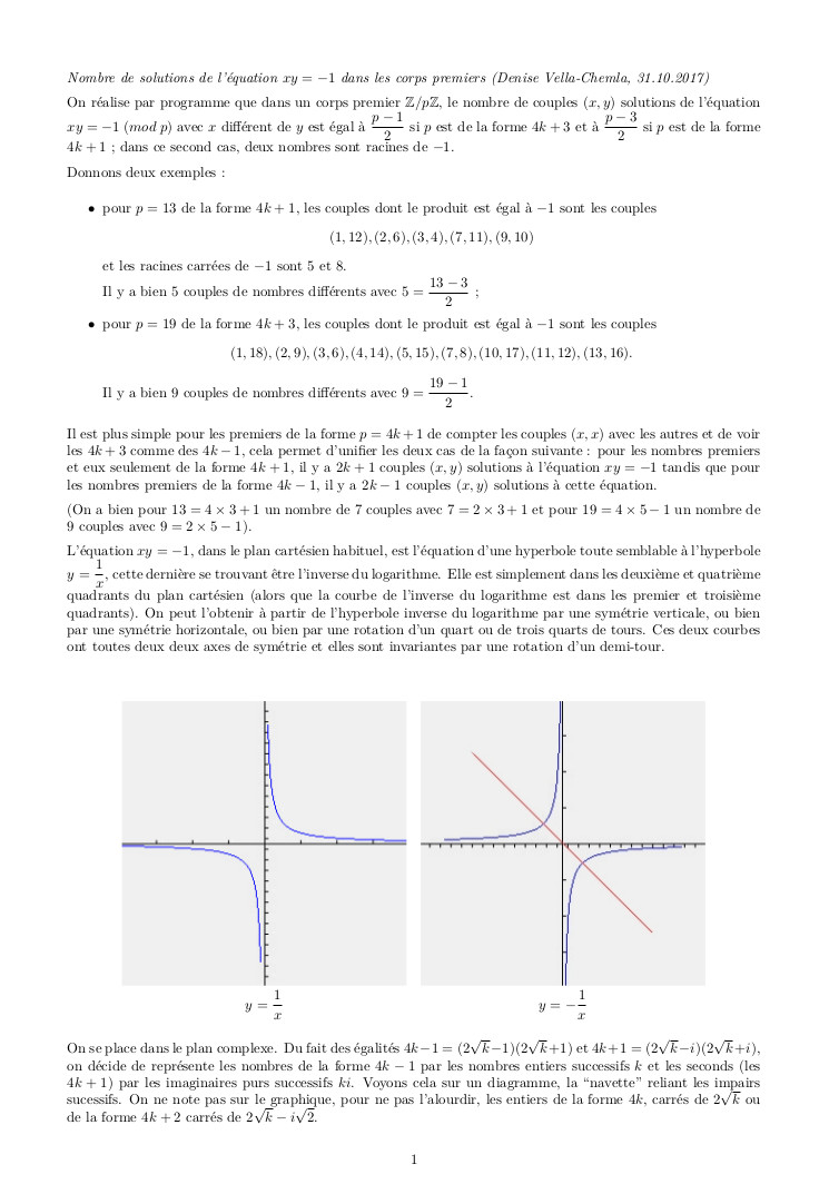 01.11.2008 : Approches algébrique et géométrique de la conjecture de Goldbach (24)