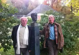 Ci-dessous, une photo de Pierre Cartier, avec Thibault Damour, près du buste de Léon Motchane, dans le Parc de l'IHÉS.