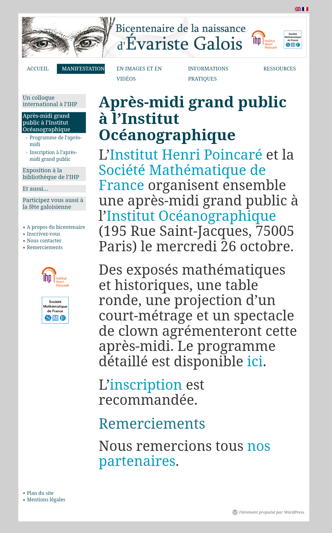 L'exposé de Pierre Cartier auquel j'avais assisté à l'Institut Océanographique :
