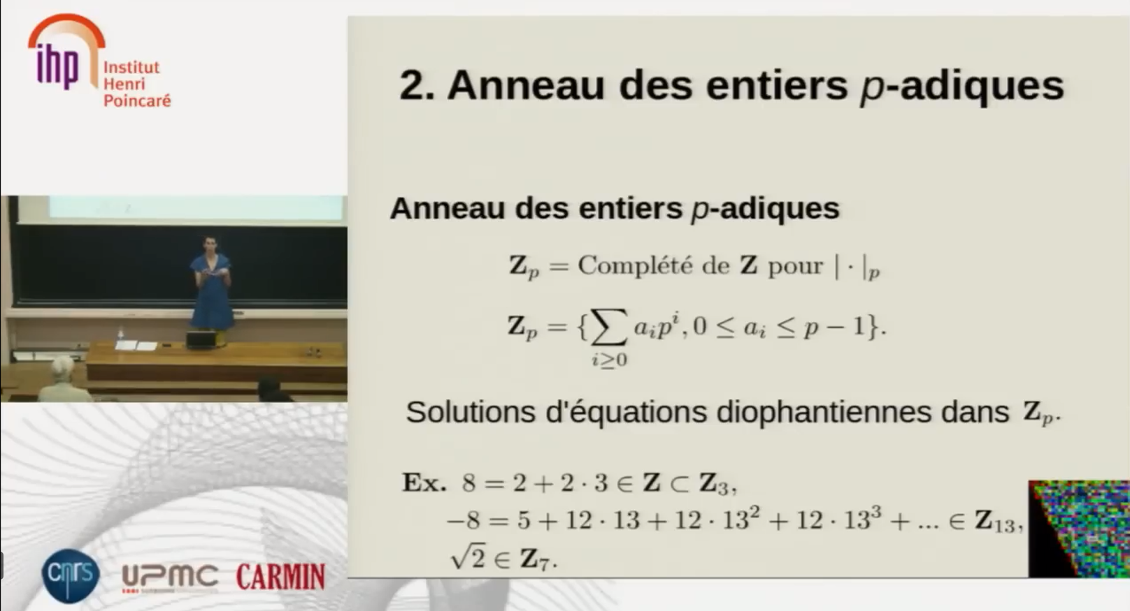 Ariane Mézard, spécialiste du monde p-adique : D’une caractéristique à l’autre : arithmétique de la réduction modulo p (dans le cadre des conférences Une question, un chercheur (IHP, Paris, 7 mars 2014, j’y étais !))