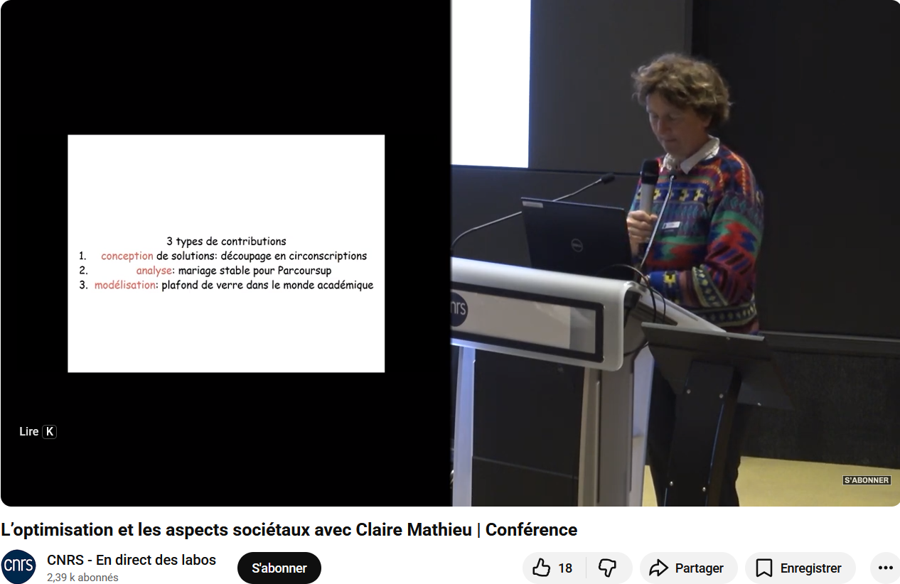 Claire Mathieu : "L’optimisation et les aspects sociétaux" (Conférence CNRS en direct des labos)