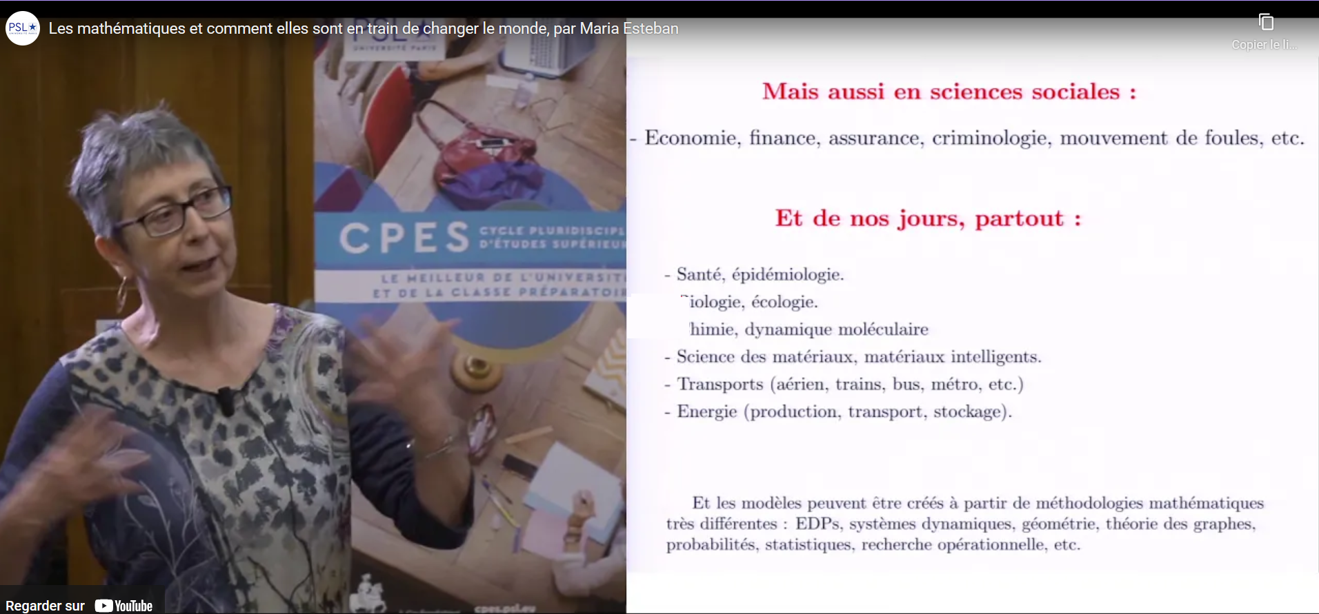 Maria Esteban : Les mathématiques et comment elles sont en train de changer le monde (pour le Cycle Pluridisciplinaire d’Etudes Supérieures (CPES) à l’Université PSL, CNRS - Paris Dauphine (CEREMADE), 20.02.2019)