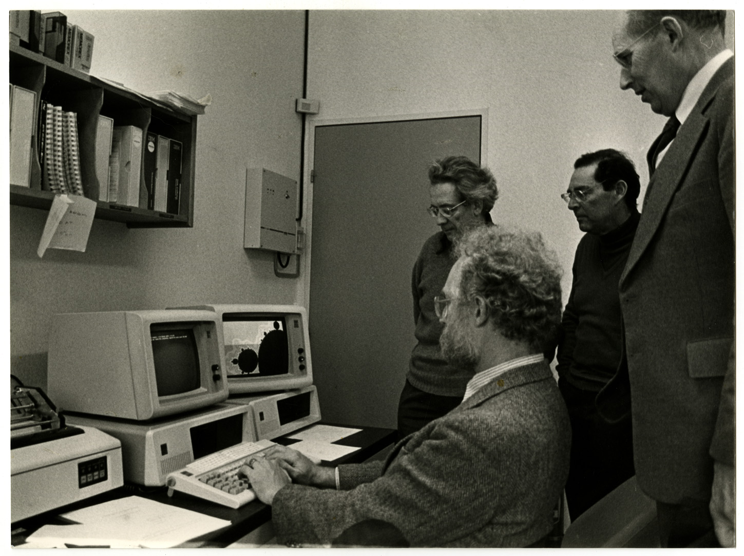 (pas tout à fait en lien, mais donnent un peu l’idée, 3 photos prises au Musée de l’Illusion à Marseille) ainsi qu’une quatrième montrant des mathématiciens visualisant des fractales, à l’IHÉS, sur des ordinateurs (vers les années 70 ? 80 ? sur des Micral ?...)